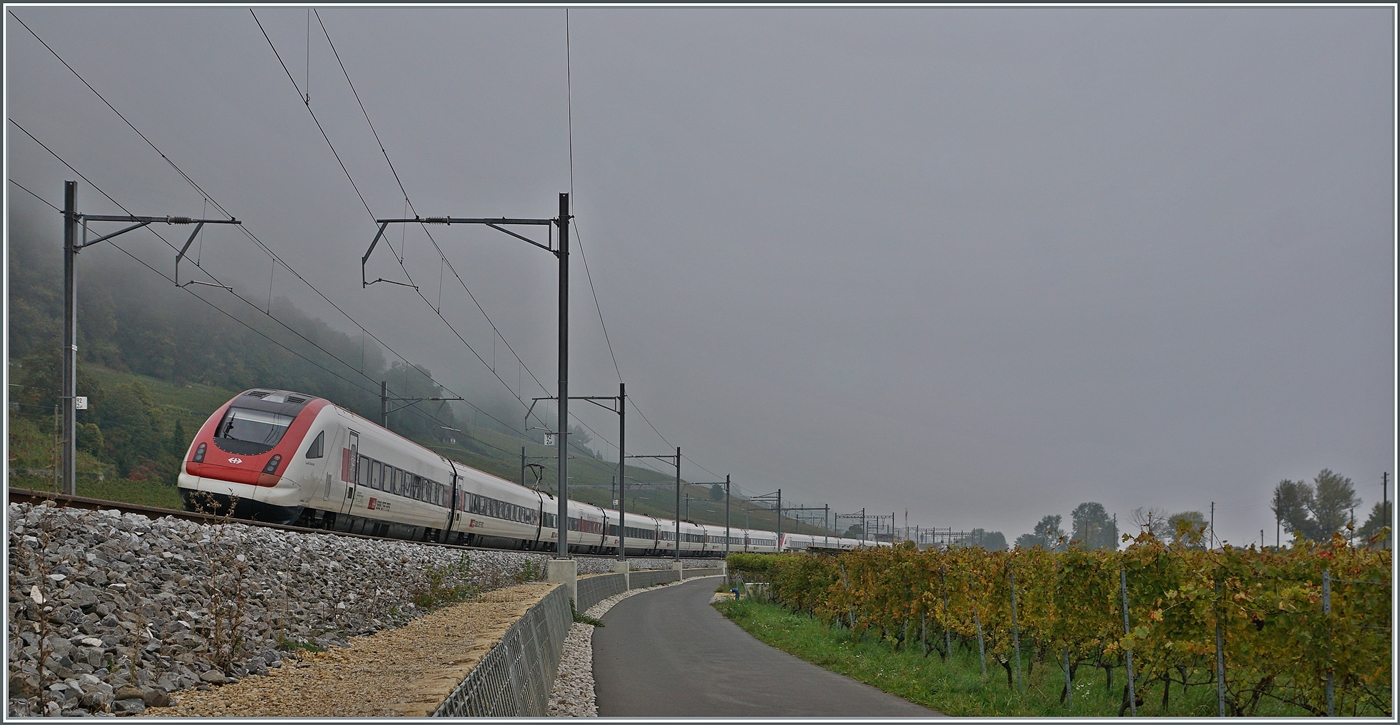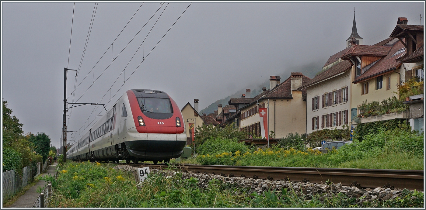 8. Okt. 2025 Zwei weitere SBB RABDe 500 sind als IC 5 521 bei Ligerz bei Kilometer 94.4 auf der Fahrt von Lausanne nach Rorschach.