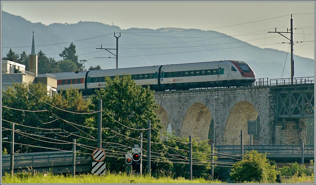Trotz nicht überzeugender Bildqualität zeigt dieses Bild doch eindrücklich die Linienführung der MLB bei der Überquerung der SBB Strecken Biel - Soloturn in Grenchen.