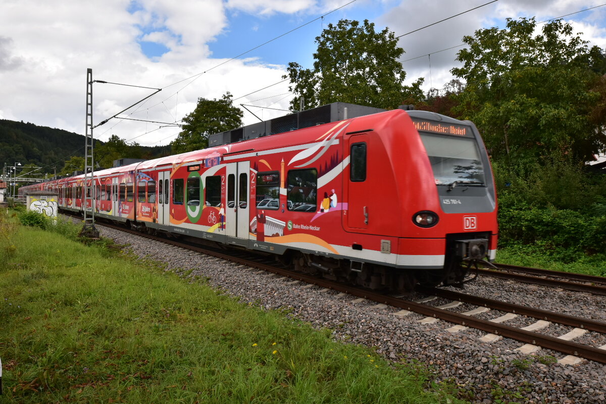 425 761 verlässt als Führungsfahrzeug eine.es S1 Zug nach Mosbach Baden gerade Neckargerach. 30.8.2025
