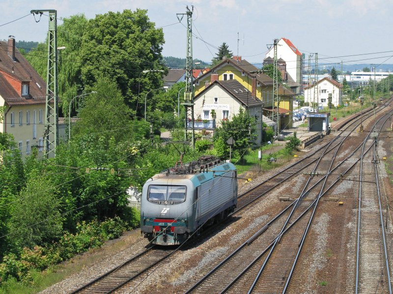 E412 014 hat soeben den Bahnhof Obertraubling durchfahren. Aufgenommen am 10.06.2008.