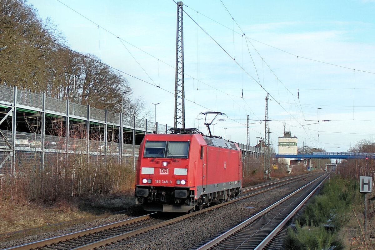 185 348-0 ist auf den Weg Richtung Hamburg. Tostedt, 16.01.2026.