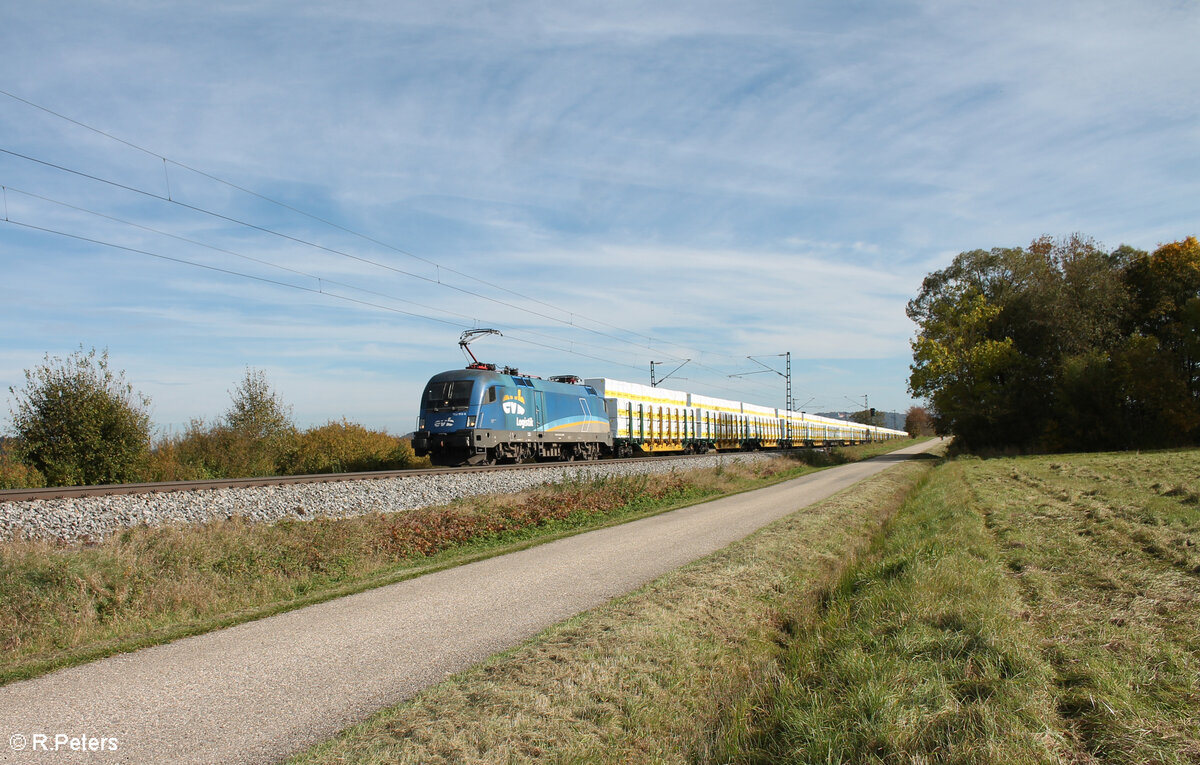 182 911 zieht bei Pölling ein Schwaiger Holzzug aus Hengersberg in Richtung Norden. 17.10.24