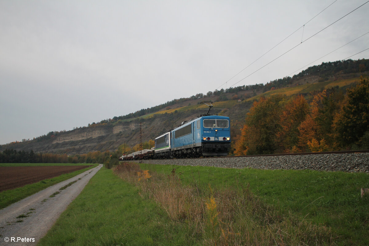 155 059-2 PRESS + 155 213-2 Integro mit einem Schwellenzug bei Thüngersheim. 20.10.24