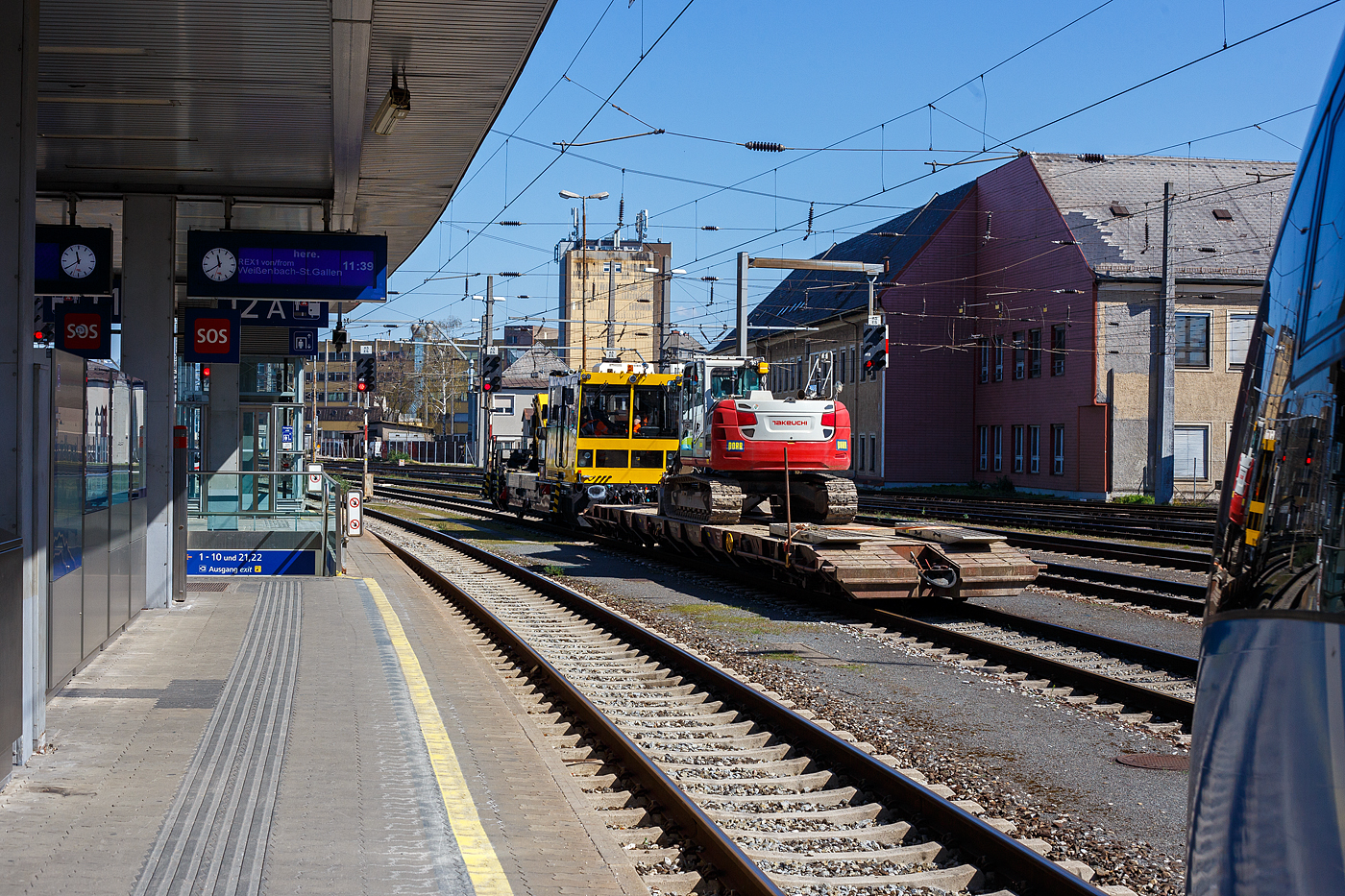 Vom Parkplatz beim Licée in Clervaux habe ich versucht den vorderen Teil des Gleisumbauzuges aufzunehmen was mir nicht ganz gelang, der Zug war einfach zu lang. 05.04.2012