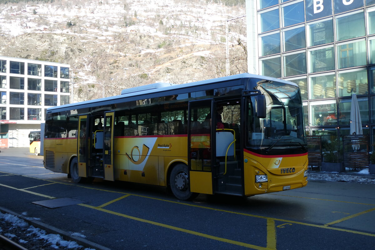 (202'477) - PostAuto Wallis - VS 424'838 - Iveco am 17. März 2019 beim Bahnhof Brig