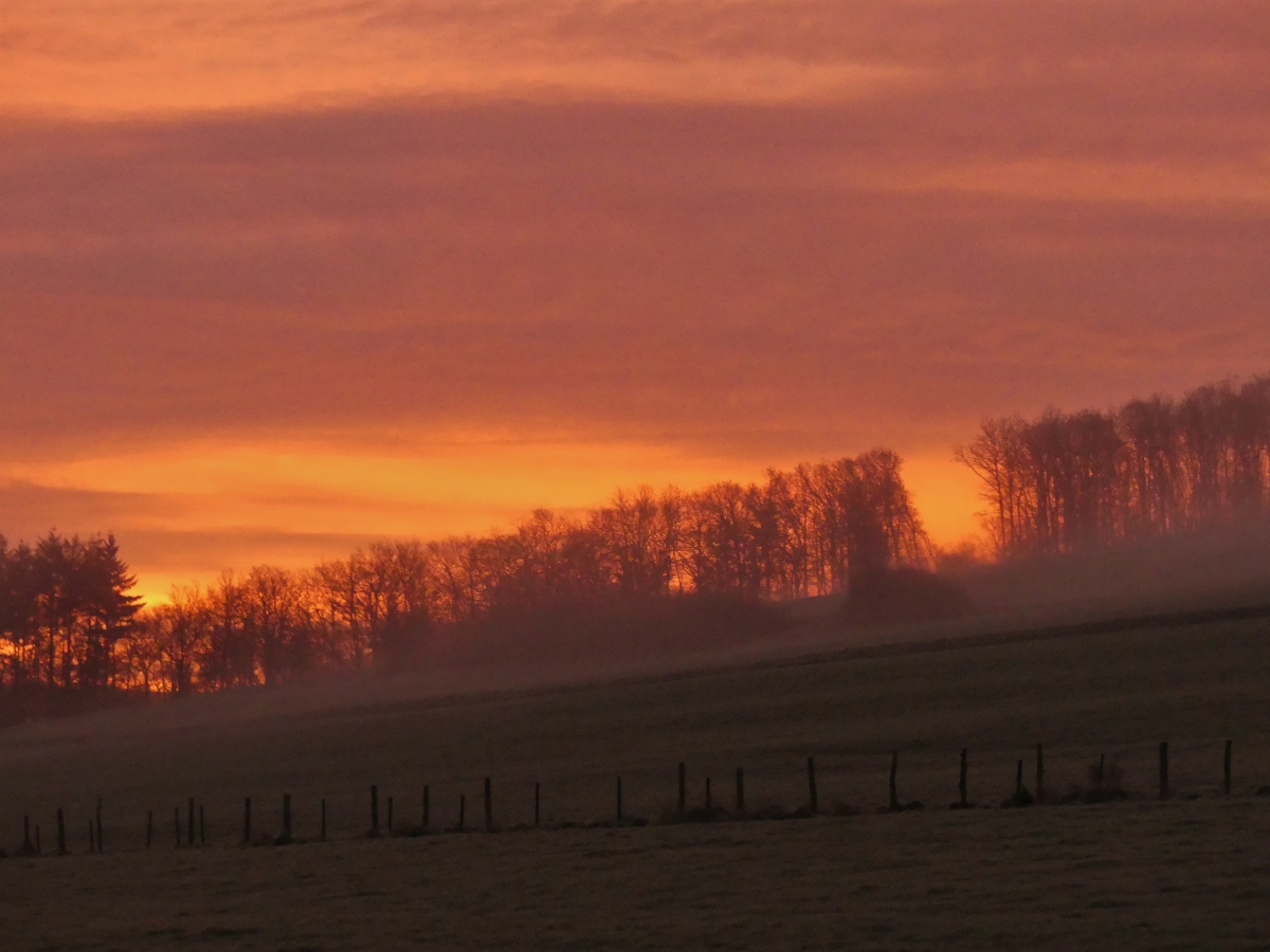 Busfahrt in den Sonnenaufgang. Auf der Fetsch hängen die Nebelschwaden über den Bergtälern und die Wolken leuchten in voller Farbenpracht. 06.10.2023 (Jeanny)