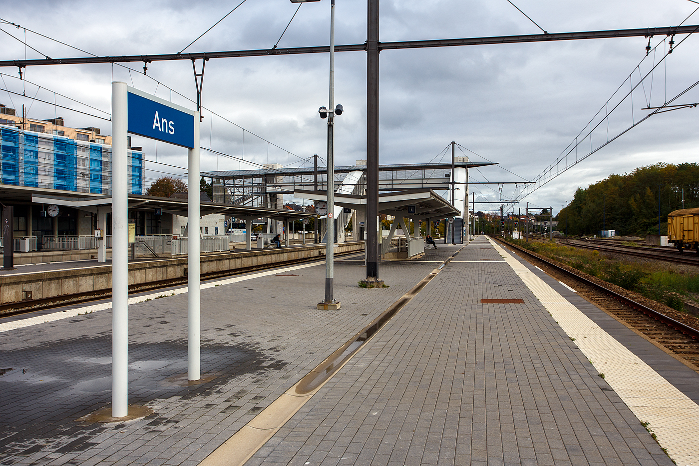 Geführt von dem SNCB/NMBS - M7 Bmx TWINDEXX-Triebwagen 91 88 8696 10 7-0 B-B, ex 76107, fährt der IC 2811 von Knokke über Gent und Brüssel nach Lüttich/Liège-Guillemins, am 21 Oktober 2025 vom Bahnhof Ans seinem baldigen Ziel entgegen.