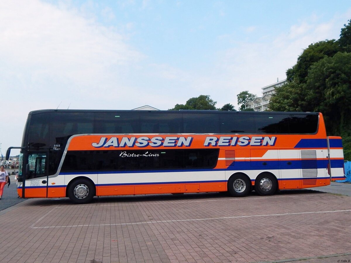 Van Hool TX16 von Dalstra Reizen aus den Niederlanden im Stadthafen Sassnitz.