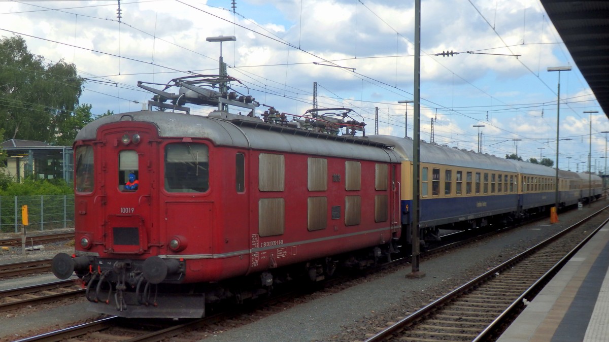 An einem Abend im Juni 2015 stand in Bamberg eine abgestellte Garnitur eines Sonderzuges der Centralbahn, der von Dillenburg nach Bamberg und zurück verkehrte. Zuglok war eine Re 4/4 10019, aus dem Jahre 1946!