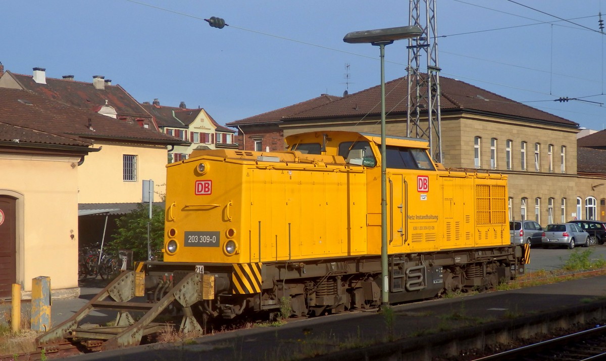 Die Lok 203-309 stand an einem Morgen im Mai 2015 in Bamberg abgestellt.