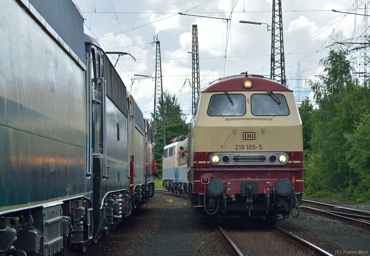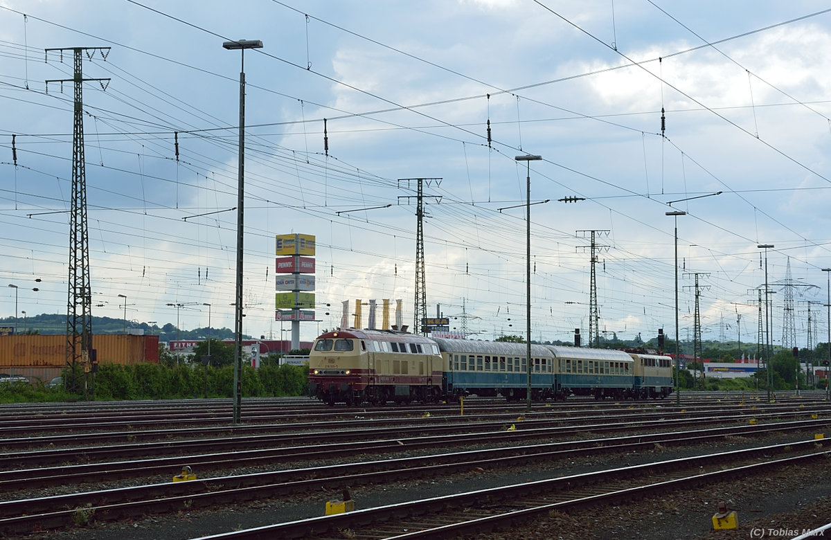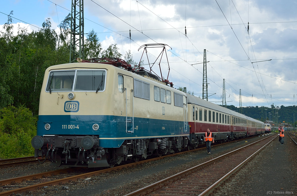 111 001 mit dem TEE-Zug im Bahnhof von Koblenz-Lützel am 18.06.2016. Ich gehörte zur Lokbesatzung der 141 228 beim Sommerfest, daher konnte ich mit Warnweste dort fotografieren.