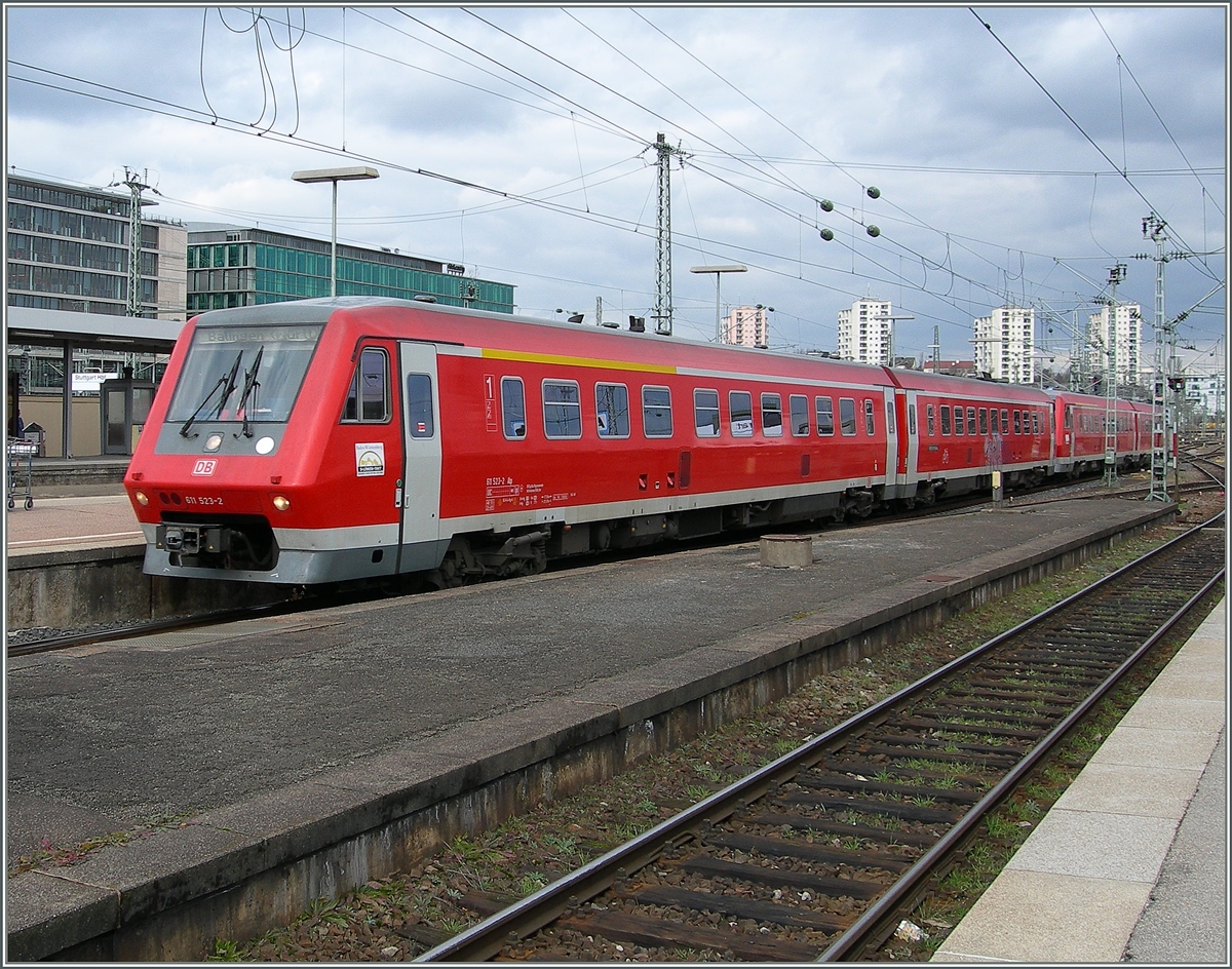 Der RE nach Aalen steht im Stuttgarter Hauptbahnhof am Gleis 16 zur Abfahrt bereit.