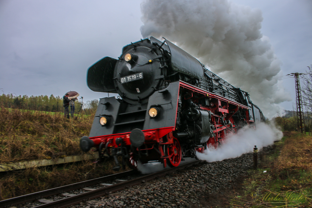 01 1519 (EFZ) auf dem Wege nach Dresden zum Dampfloktreffen 2016, hier durchfährt sie den Ortsteil Gera Kaimberg