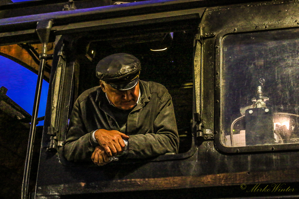 Nach der Ankunft im Bahnhof Gera war zeit für den Lokführer sich mit den Fotografen zu Unterhalten, auch viele Mitreisende hatten noch die eine oder andere Frage.