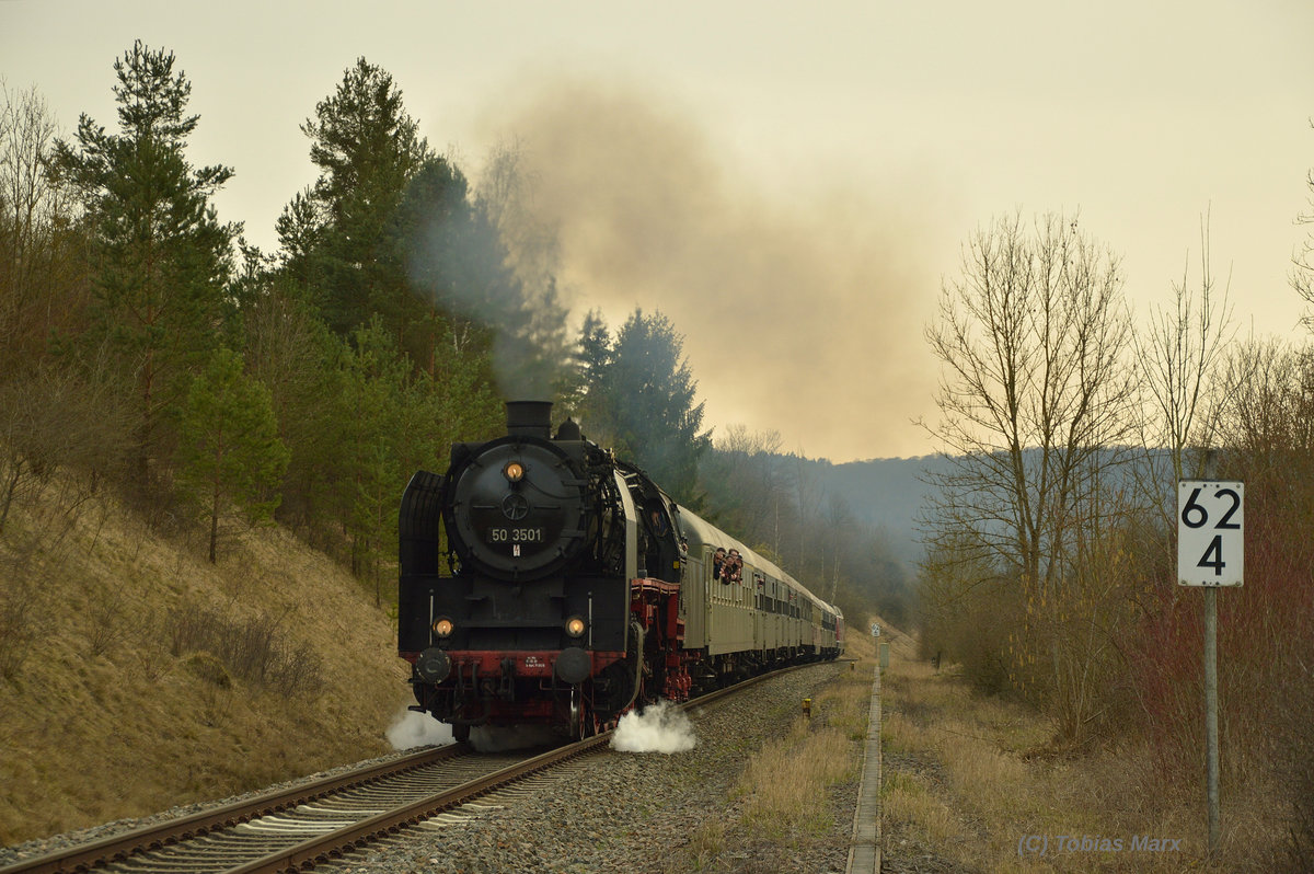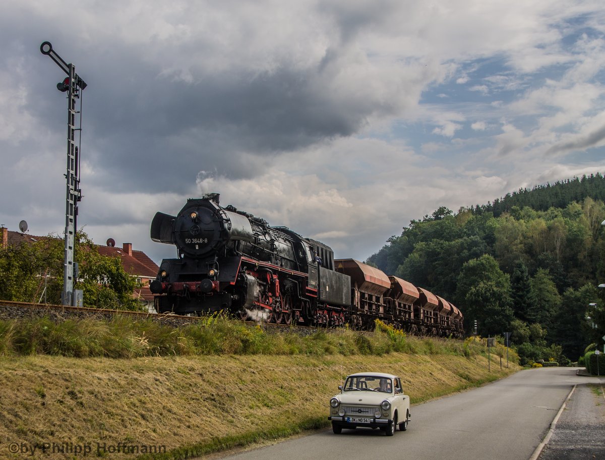 Am Einfahrtssignal Wasungen konnte eins der wenigen Bilder von 50 3648-8 an der Spitze des Zuges zum Plandampf "Stahl für Paris"/"Dampf trifft Kies" 2016 gemacht werden. Bild des Monats September 2016
