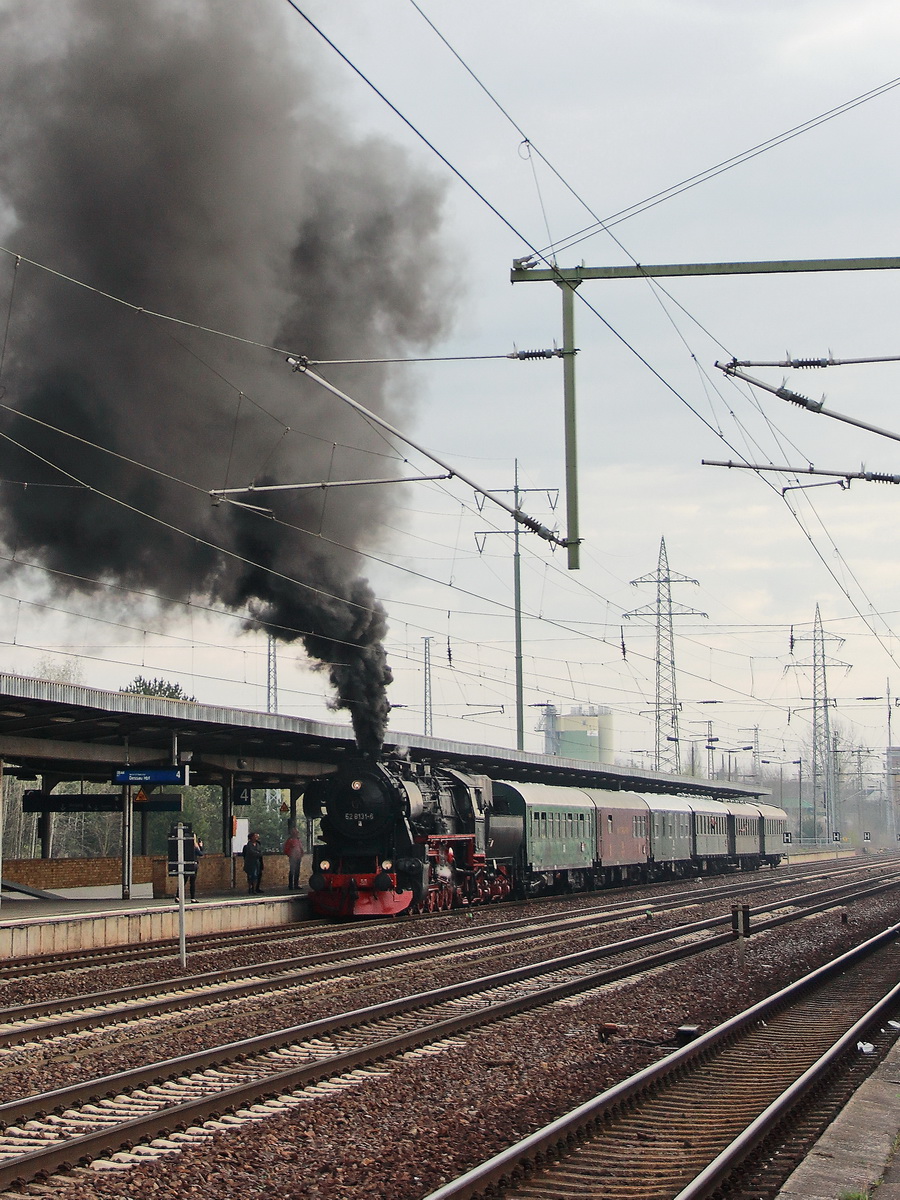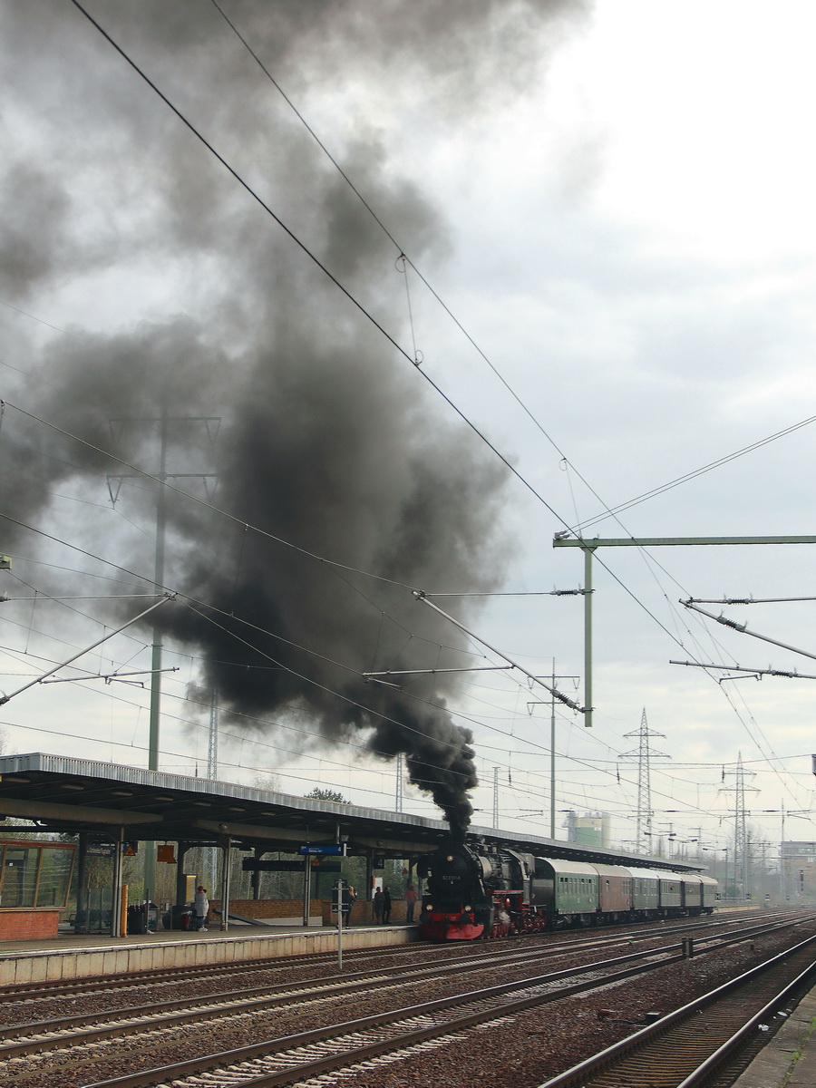 Gleich folgt die Ausfahrt der 52 8131-6 der WFL nach Finsterwalde am 15. April 2018.