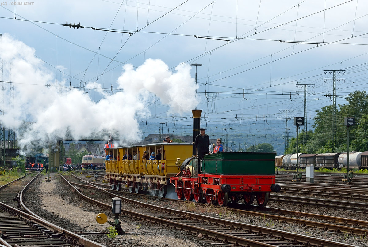 Der Adler bei der Rückankunft von der Lokparade am 18.06.2016 in Koblenz. Ich gehörte zur Lokbesatzung der 141 228 beim Sommerfest, daher konnte ich mit Warnweste dort fotografieren.
