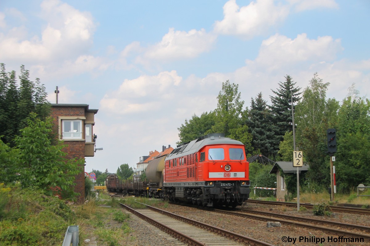 232 472 bespannte den heutige Saalebahnumleiter ab Engelsdorf nach Saalfeld. Nachdem in letzter Zeit diese Leistung ohne Zug gefahren wurde, hingen heute Ausnahmsweise wieder was dran, um genau zu sein 12 Wagen. Hier die Einfahrt in den Bahnhof Knauthain.