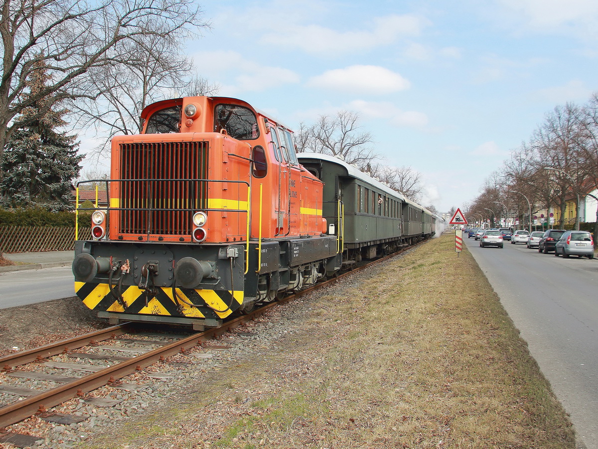ML 00605 der Neukölln - Mittenwalder Eisenbahn-Gesellschaft AG (NME) in der Stubenrauchstrasse in Berlin Rudow am 17. März 2018.