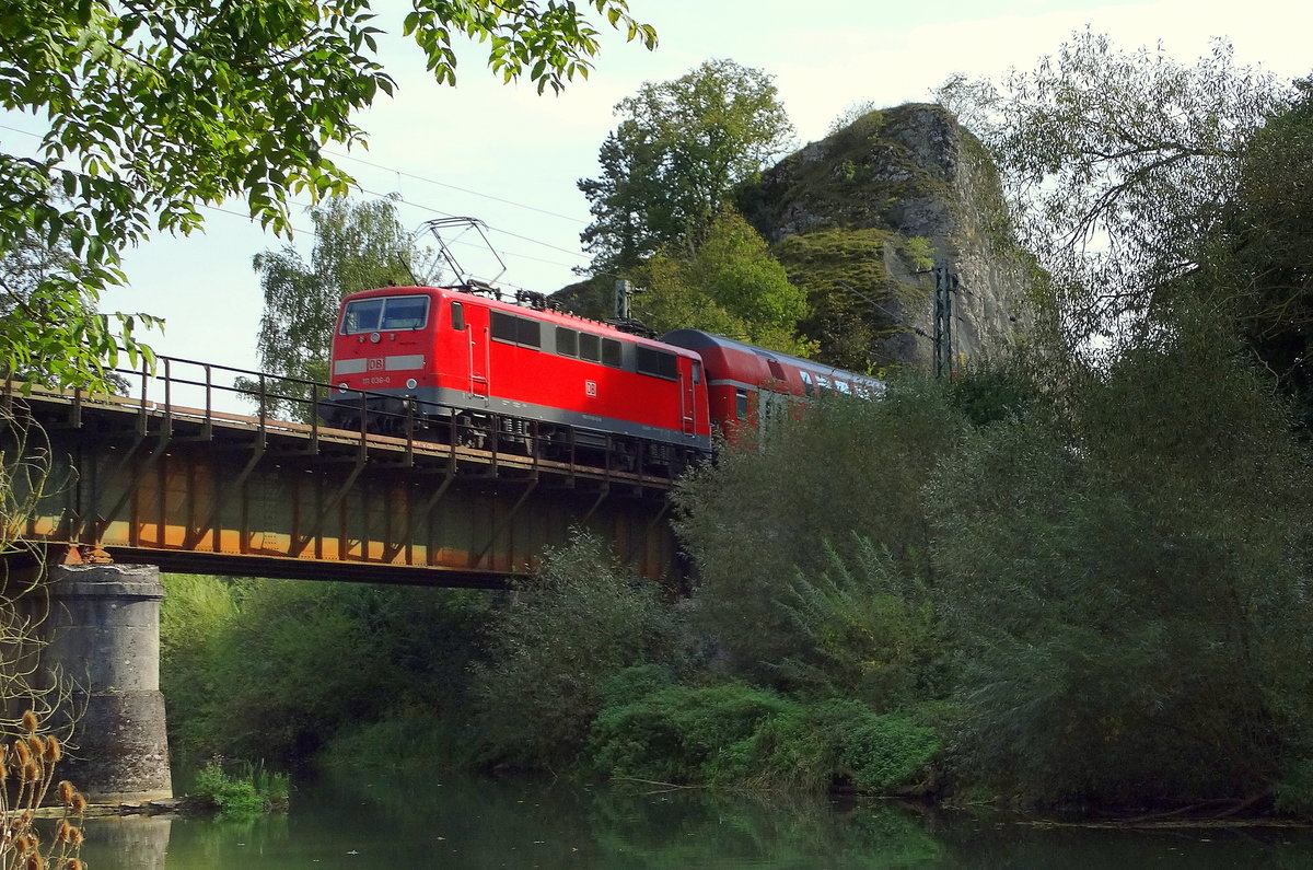 Ein RE Treuchtlingen - München überquert die Altmühl bei Dollnstein. Aufgenommen am 1. Oktober 2016.