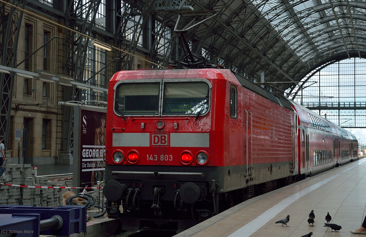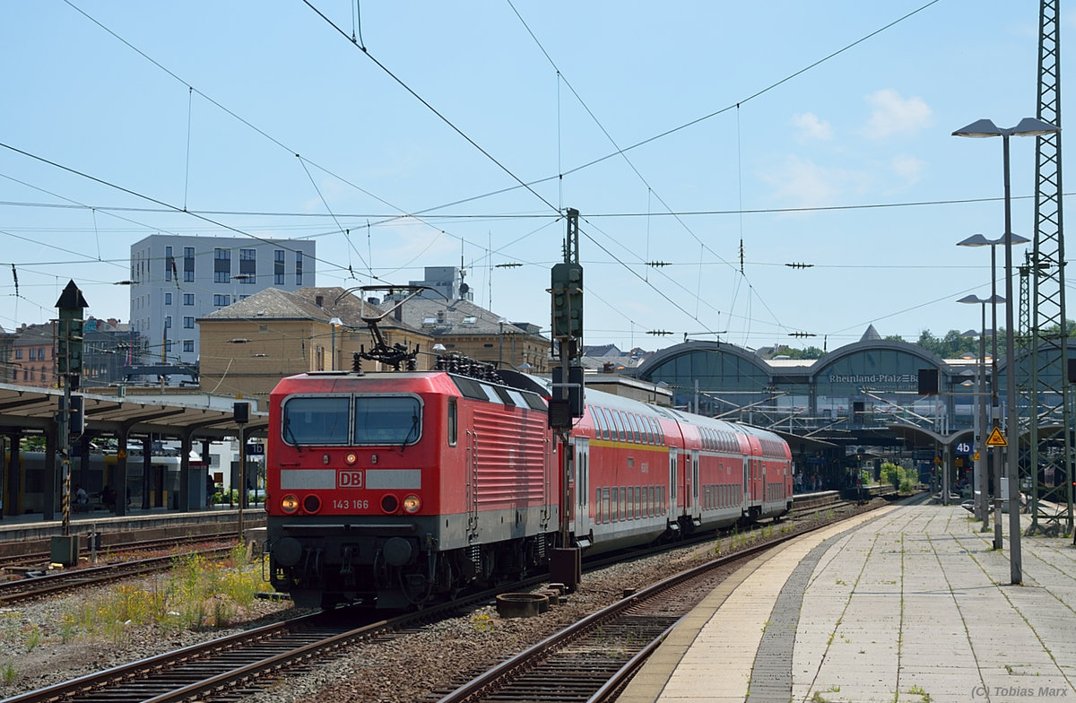 143 166 bei der Ausfahrt mit der RB75 nach Wiesbaden am 07.07.2016 aus Mainz Hbf.