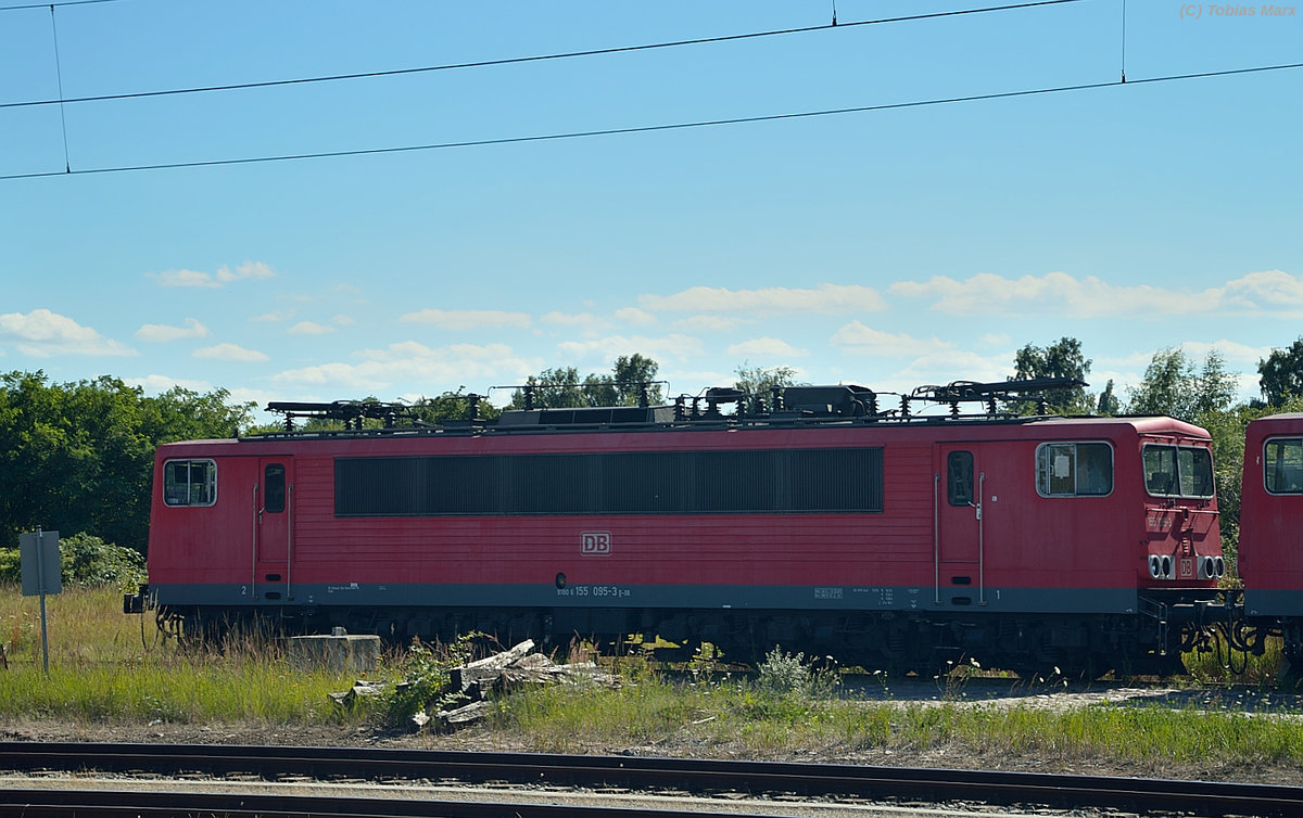 Durchfahrt 155 263-6 am 09. August 2017 durch den Bahnhof Berlin Schönefeld Flughafen.