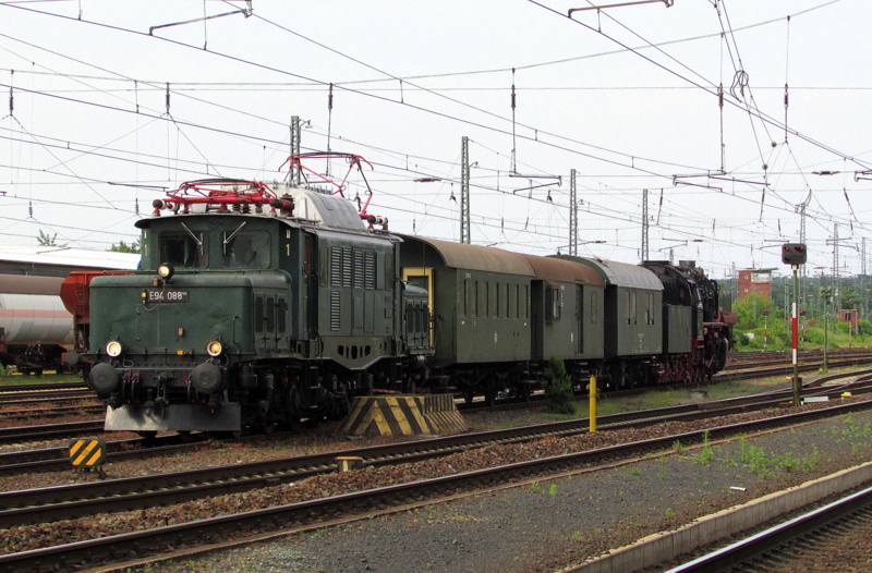 Am 17.02.14 brachte E94 192 die 142 130-4 und die 140 438-3 von Nördlingen nach Dessau. Hier die Durchfahrt in Remschütz.
