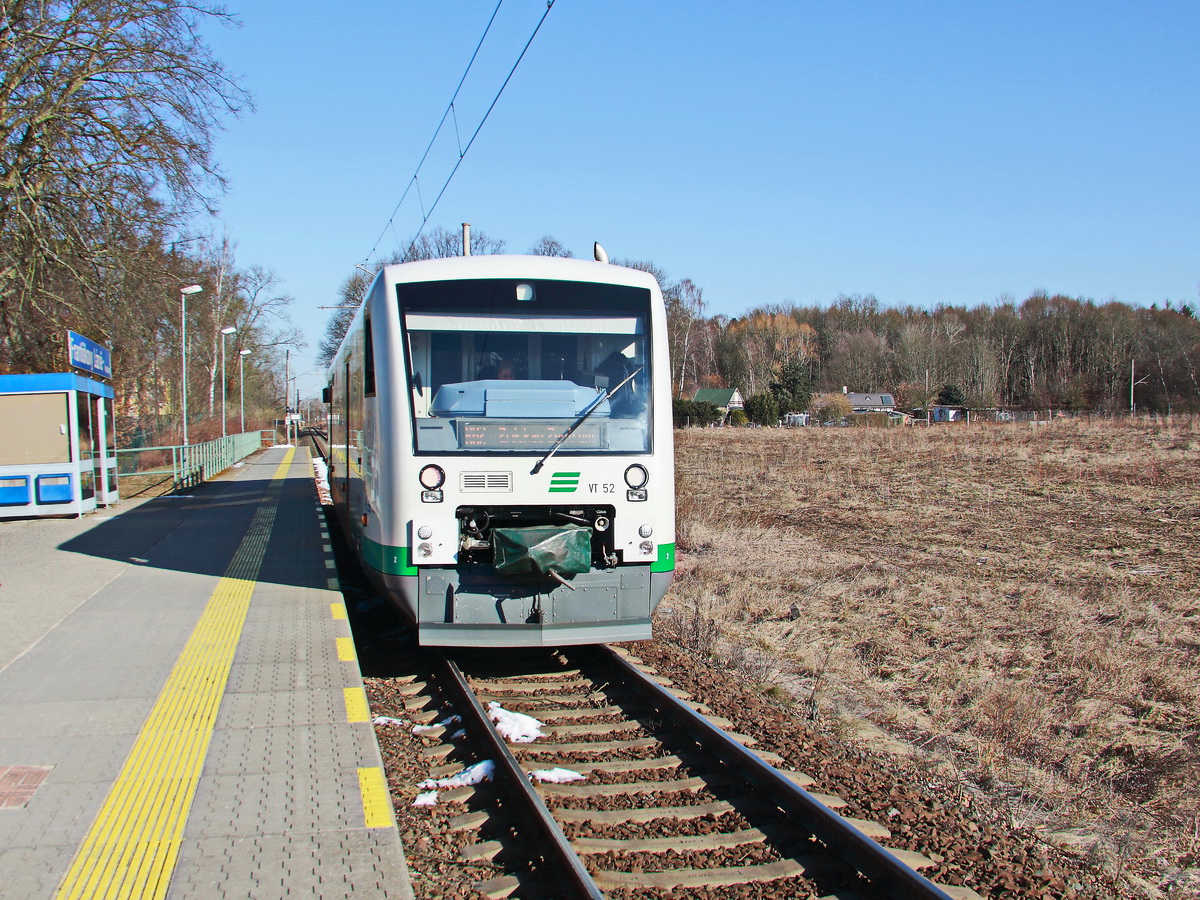 VT 52 (95 80 0650 152-1 D-VBG) der Vogtlandbahn in Haltepunkt Franzensbad Aquaforum (Tschechien) am 25. Februar 2018