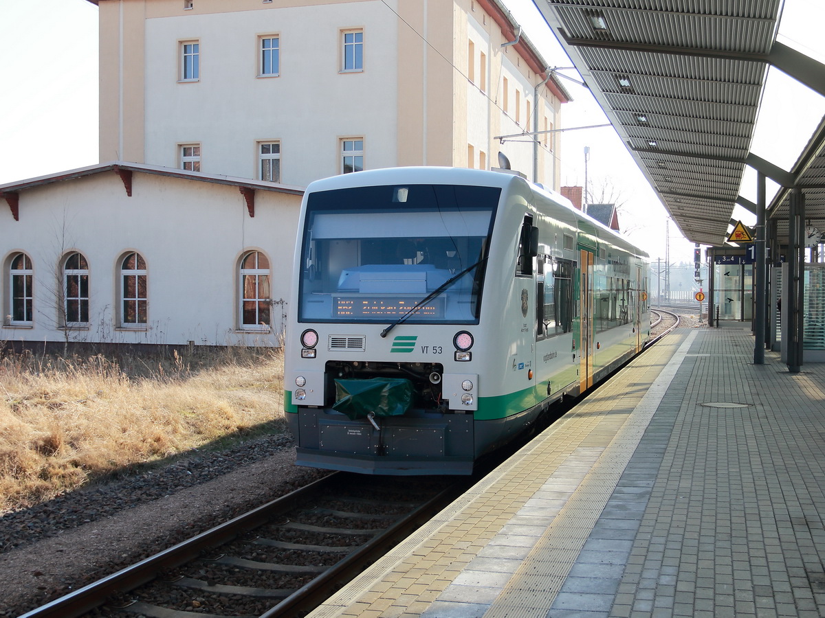 VT 53 (95 80 0650 153-9 D-VBG) der Vogtlandbahn in Werdau in Sachsenam 01. März 2018