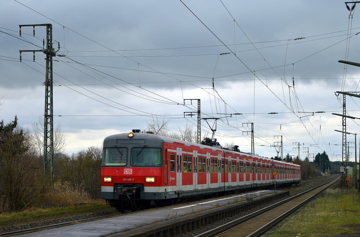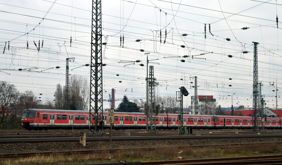 Die S7 in Form eines Triebzuges der Baureihe 420, steht nach Riedstadt-Goddelau im Hauptbahnhof von Frankfurt am Main bereit.