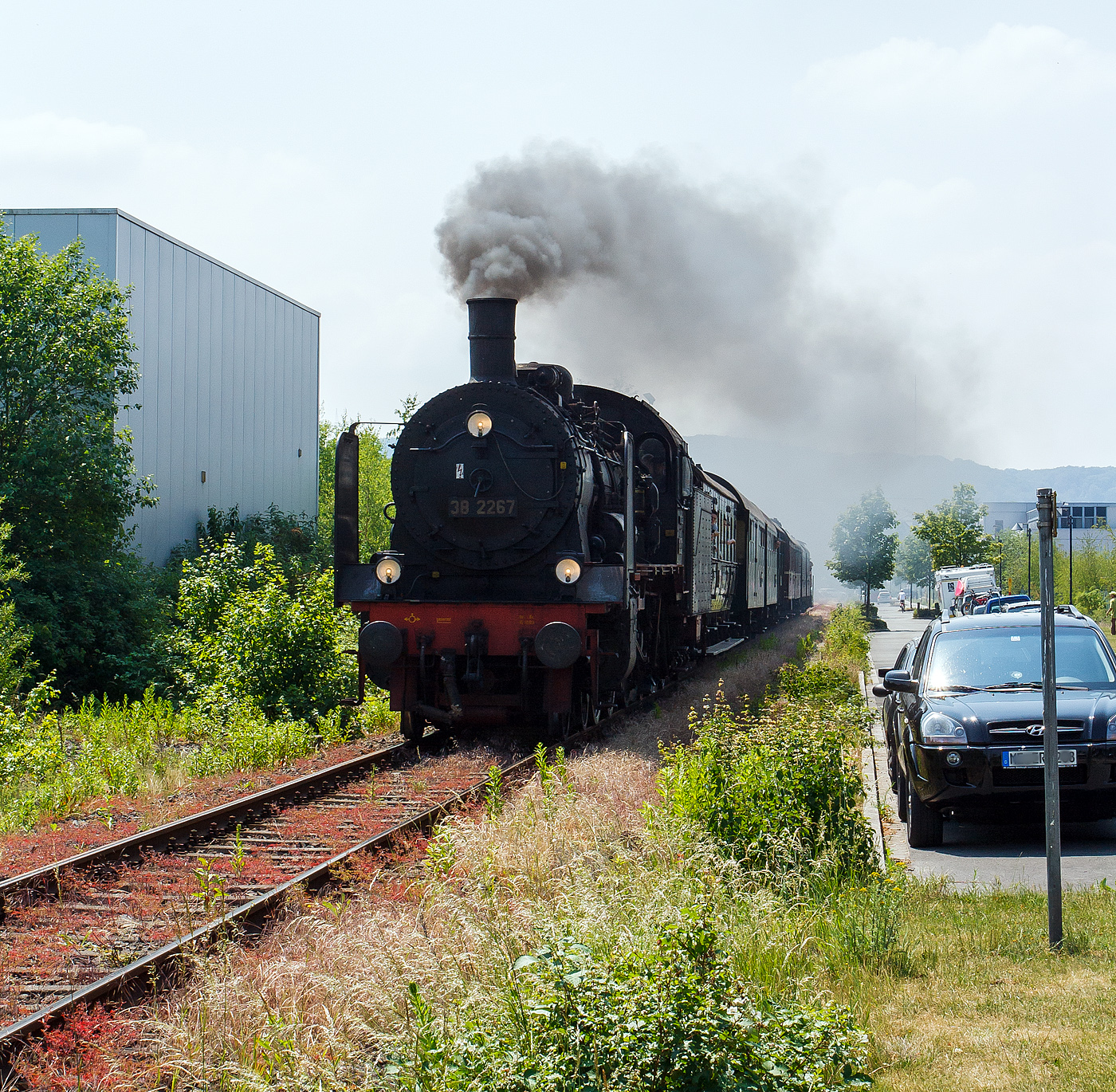Im letzten Licht, gegen 20:03 Uhr kommt der erste entlich: Die Bochumer (DGEG) 38 2267 (P 8) zieht den ersten Sonderzug der Eifelbahn, auf der Rückfahrt von Gießen, über die Siegstrecke (KBS 460) in Richtung Köln. Hier am 28.04.2012 in Betzdorf/Sieg.