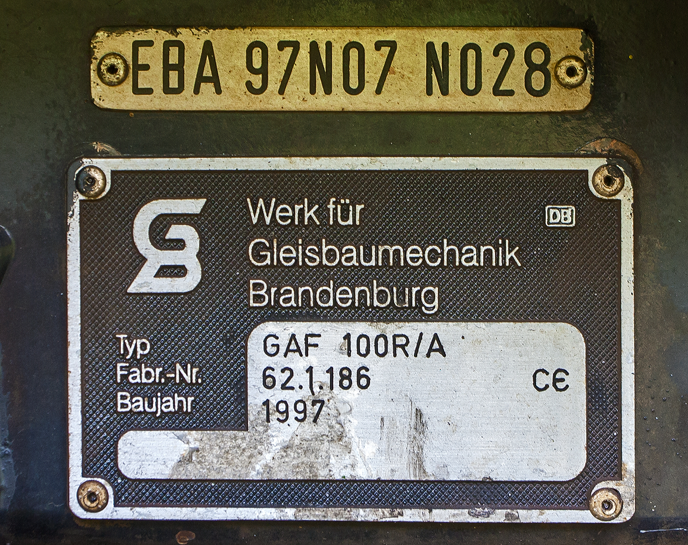Fabrikschild von dem Plasser Ibérica auf der iaf 2017 Internationale Ausstellung Fahrwegtechnik in Münster (01.06.2017) präsentierten DIC-30, ein universelles Fahrzeug für die Instandhaltung von Oberleitungen.