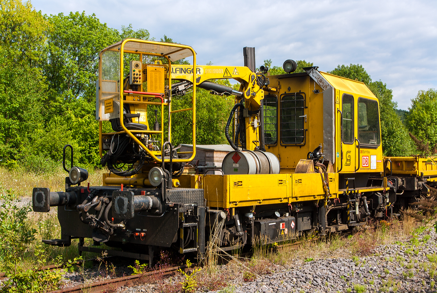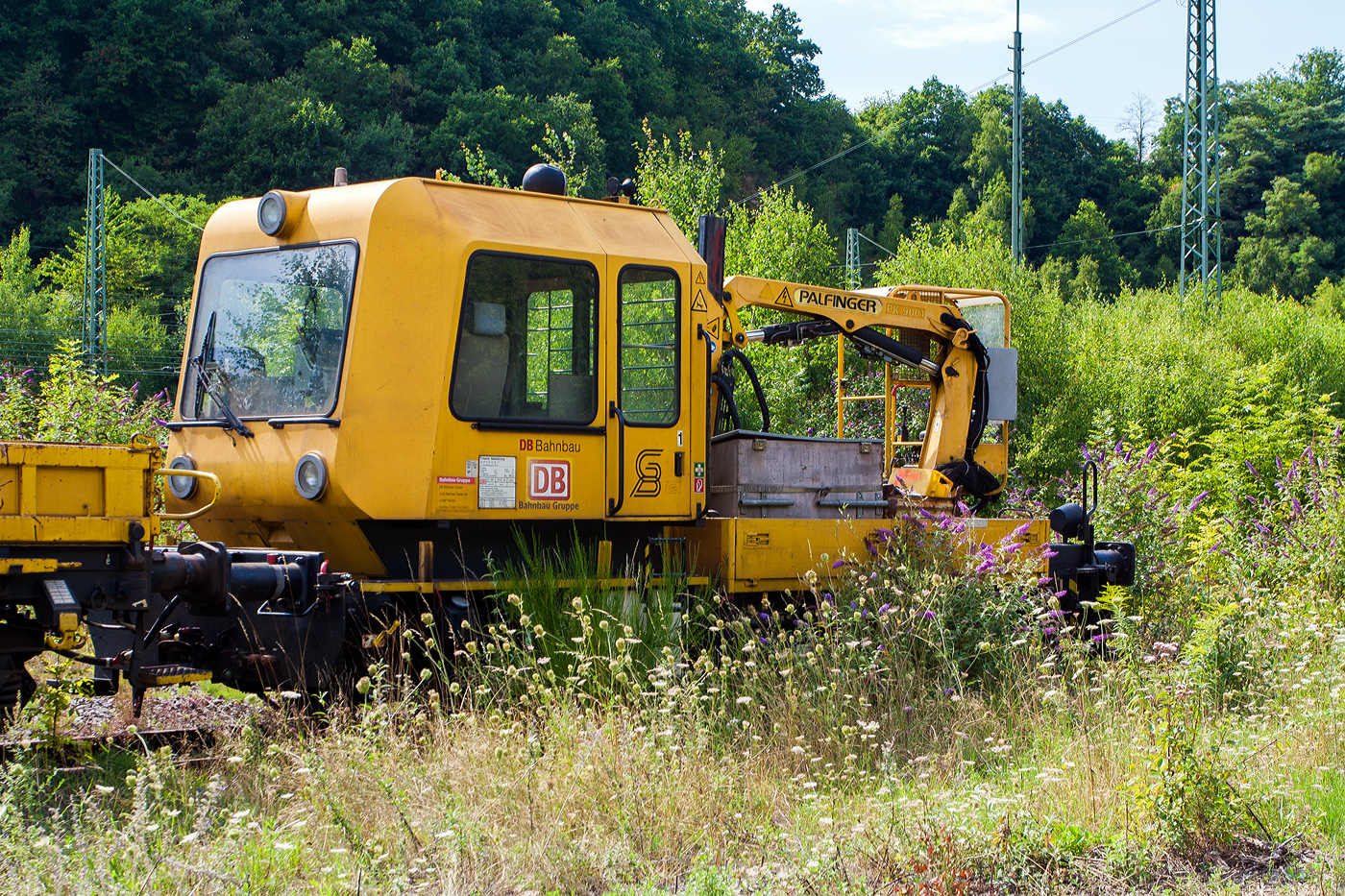 GBM 62.1.186 Fabrikschild von dem Gleisarbeitsfahrzeug GAF 100 R/A (Schweres Nebenfahrzeug Nr. 97 17 52 112 18-7) der DB Bahnbau GmbH am 14 August 2013 im Rbf Betzdorf/Sieg abgestellt.