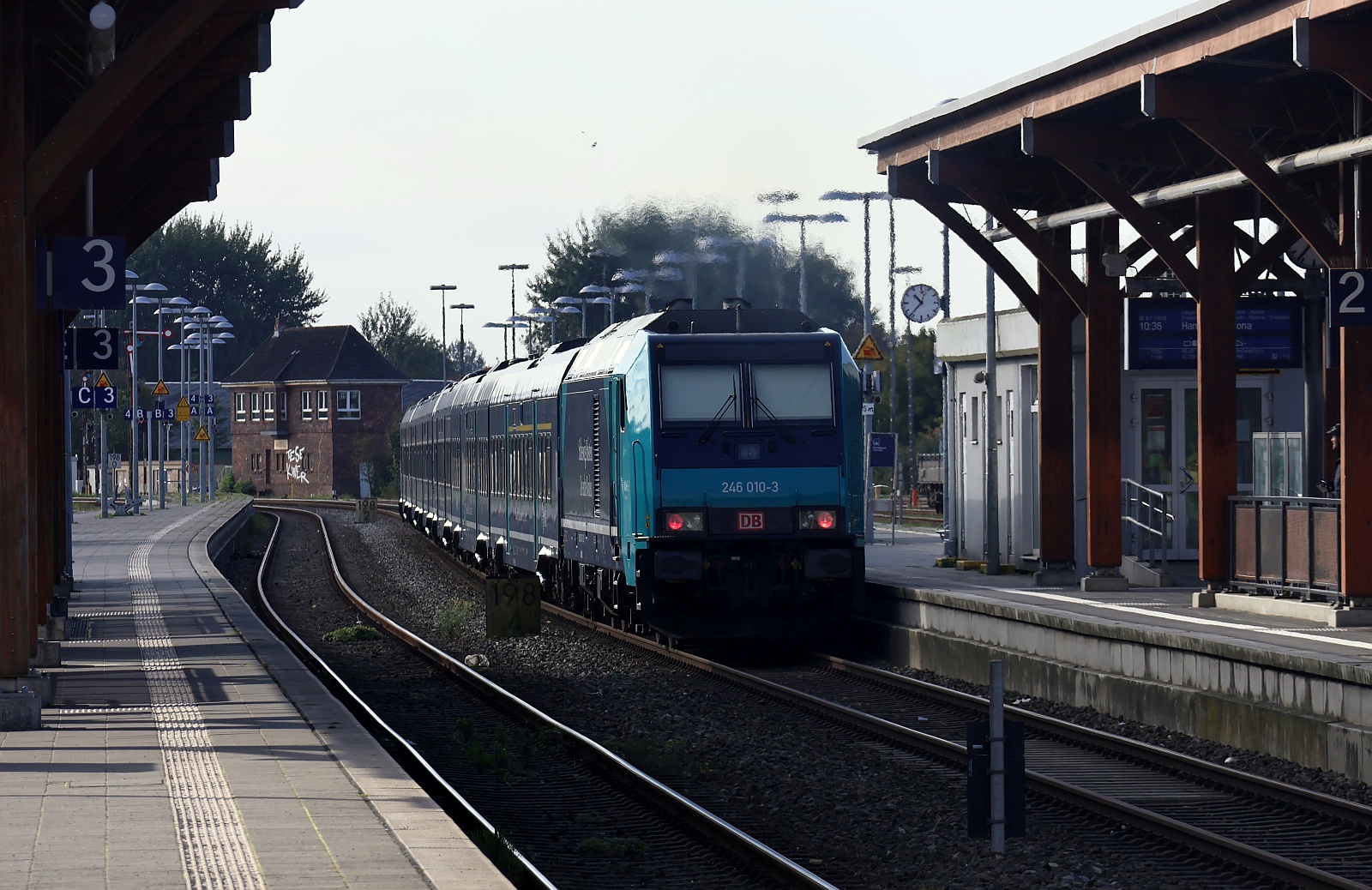 Geländerfrei brummt sie vorbei...DB 295 044-2 dieselt hier an der ME 246 009-5 vorbei durch den Bhf Hamburg-Harburg. 23.07.2015