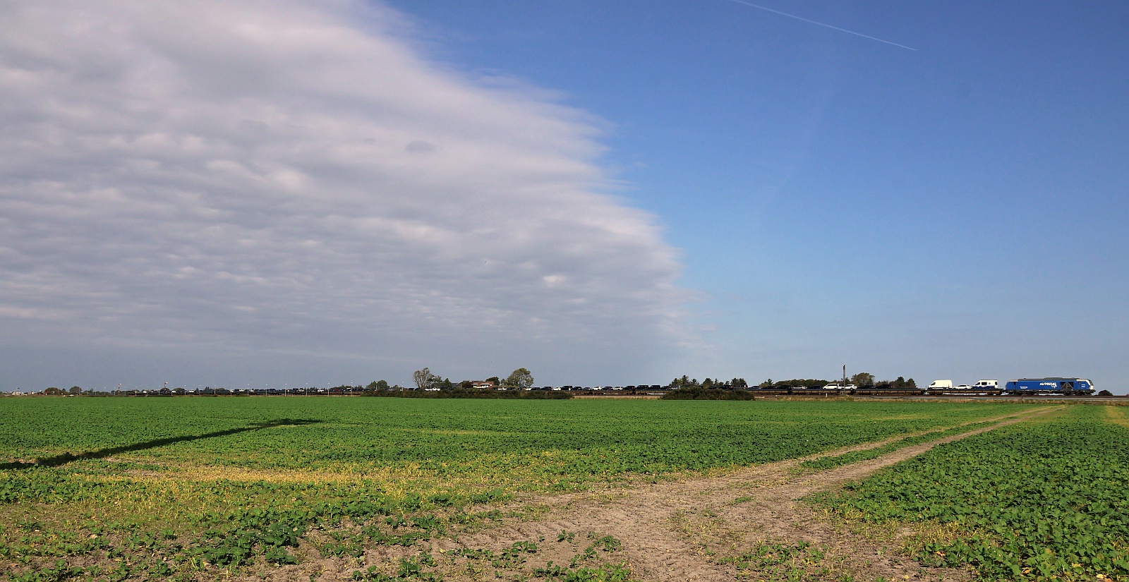 Fast fertig....einer der letzten Holzzüge die in Jübek beladen wurden...247 902-0 in Jübek 08.10.2016