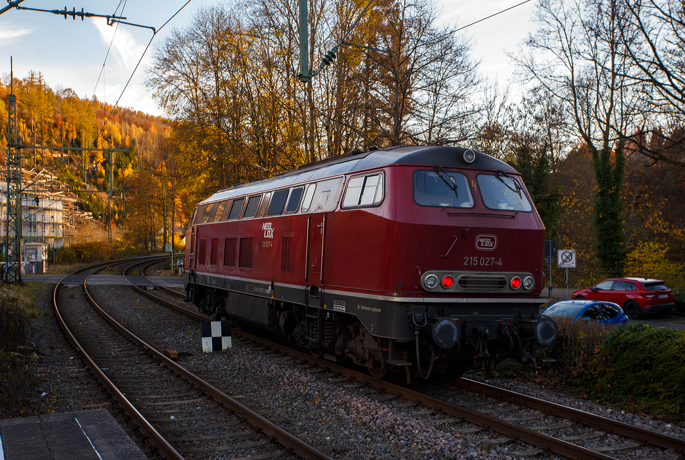 Die 225 082-7 der Aggerbahn (Andreas Voll e.K., Wiehl), ex DB 225 082-7, ex DB 215 082-9, steht am 12.11.2013 (2:00 Uhr) beim Siegener Lokschuppen.