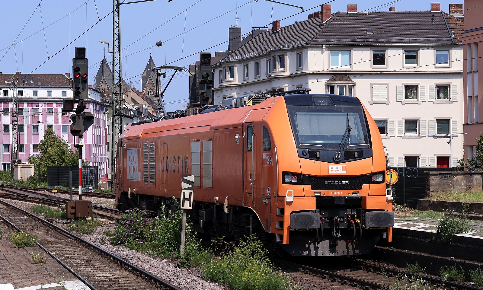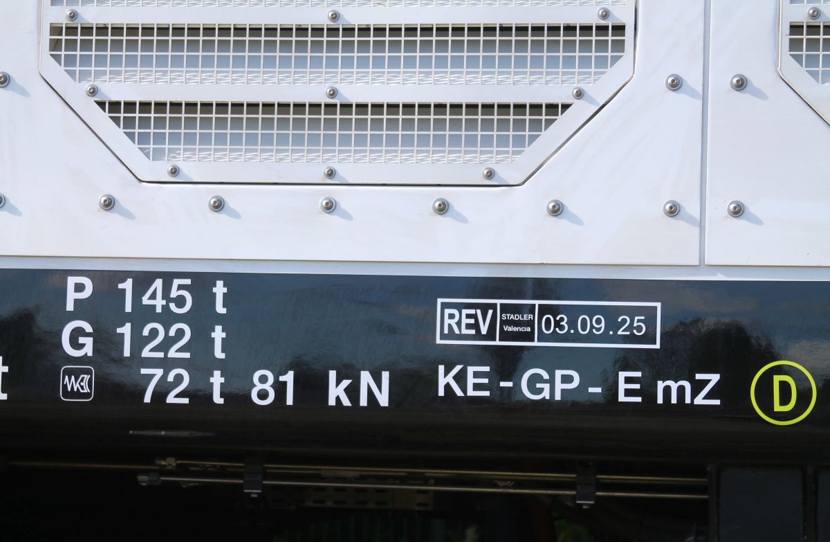 ELP/hvle 159 272 vor Düngerzug in Flensburg-Weiche, wegen ungünstgem Sonnenstand von seitlich rechts hinten aufgenommen, 25.09.2025