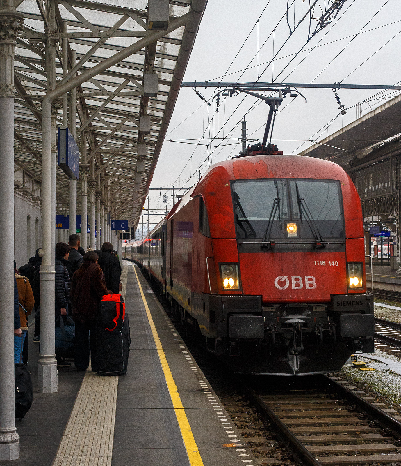 Im Sandwich, geführt von der ÖBB 1116 274 und nach geschoben von der ÖBB 1016 023, erreicht der IC 2298 von Stuttgart Hbf am Morgen des 26.10.2021 den Endbahnhof Frankfurt am Main Hauptbahnhof. Gleichdrauf wird er als EC 113 nach Klagenfurt Hbf bereitgestellt. Wir fahren bis Stuttgart Hbf mit.
