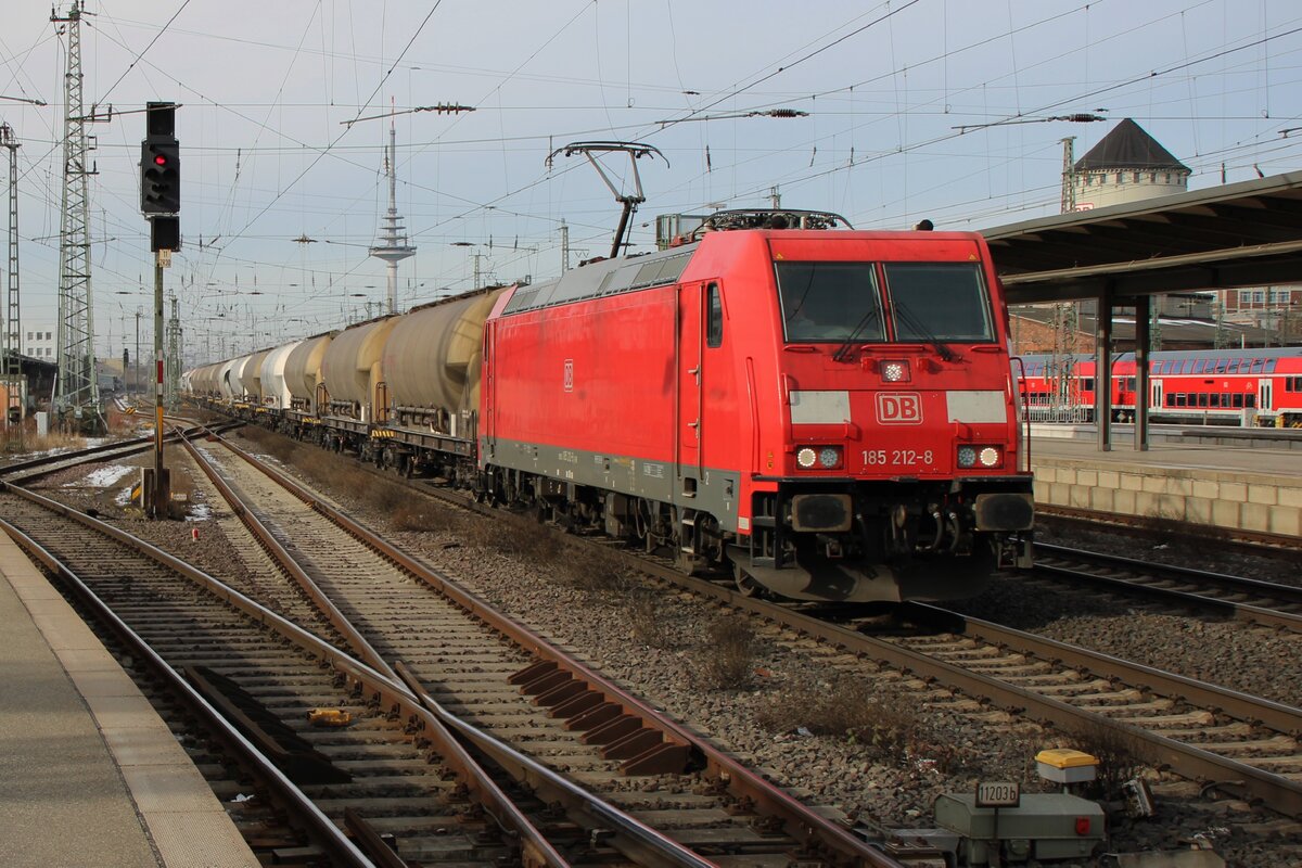 Am 19 Februar 2025 durchfahrt 185 212 samt Silozug Bremen Hbf.