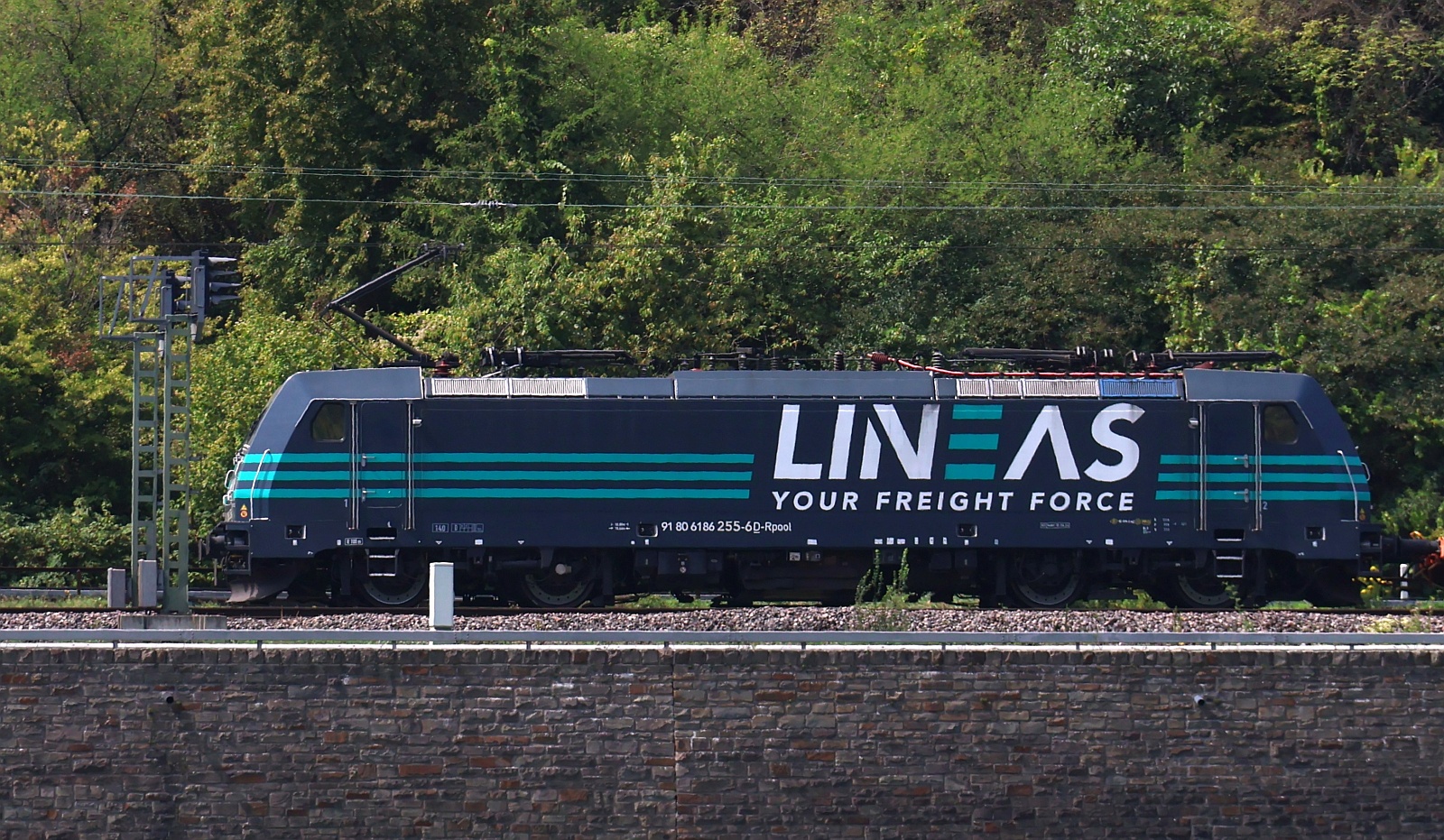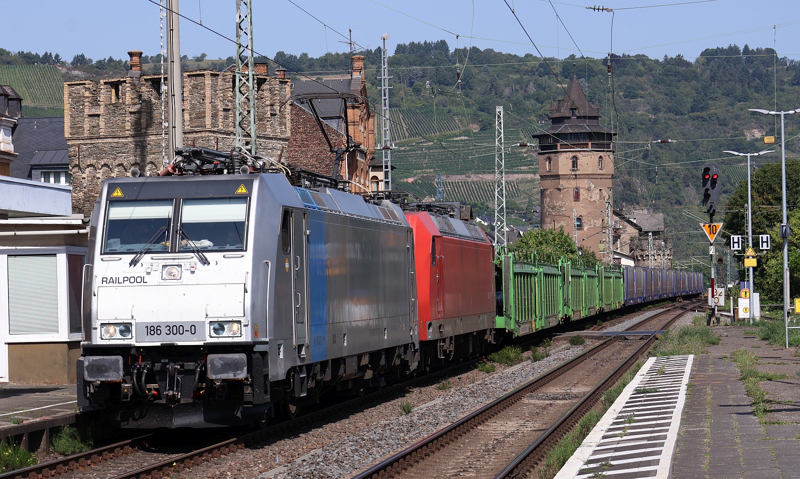 AKIEM/Lineas 186 386-9 mit KLV. Bingen Hbf 22.10.2023
