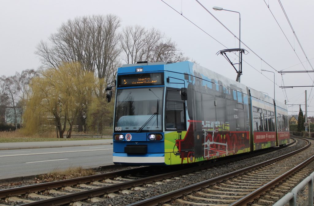 Lowa Wagen 156 mit grüßenden Weihnachtsmann am 08.12.2024 in der Rostocker Innenstadt.