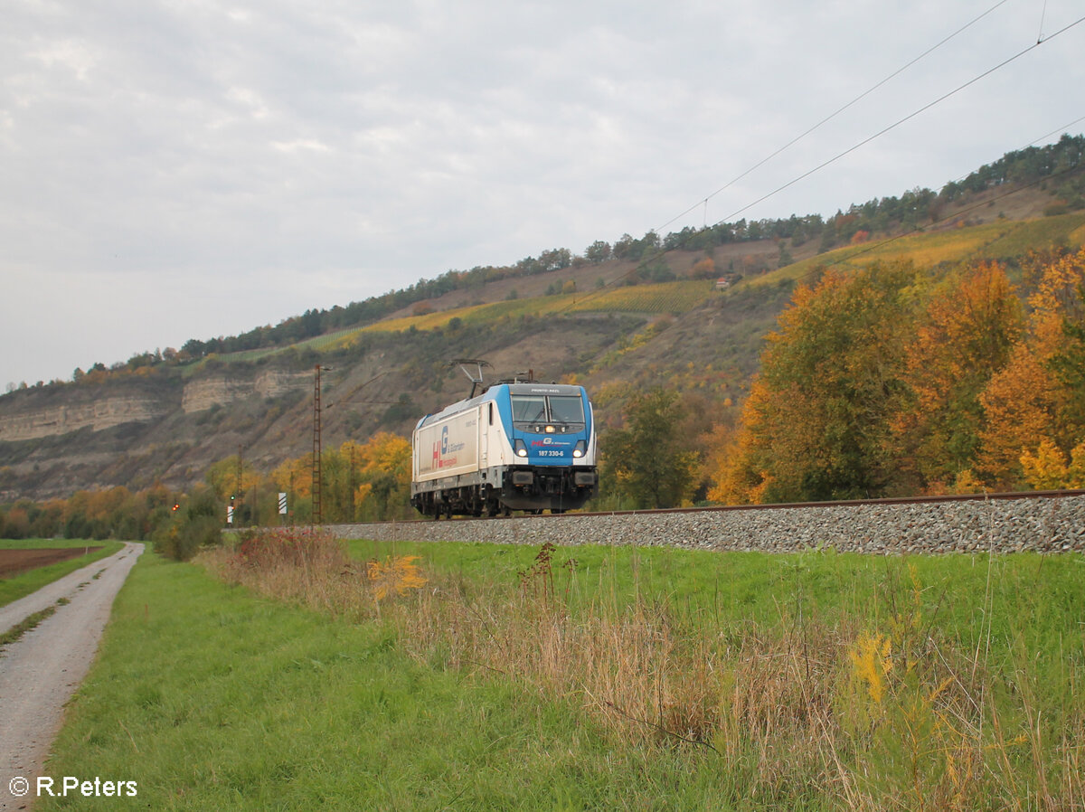 187 330-6 zieht ein Holzzug bei Postbauer-Heng in Richtung Nürnberg. 03.07.20