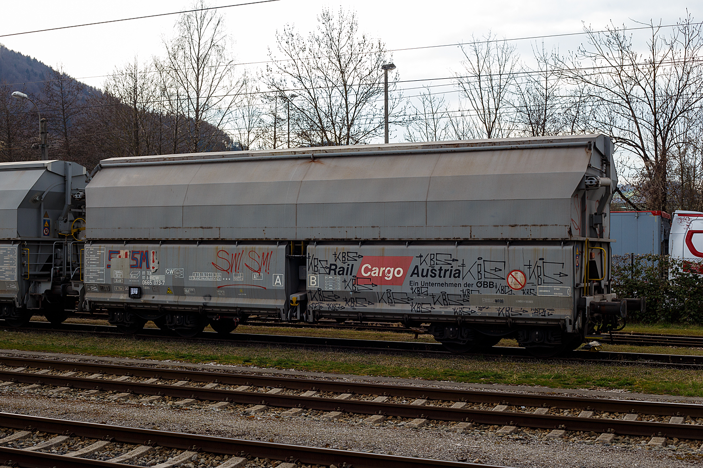 Der Wagen gehörte zuvor der Schweizer Vermietungsfirma Wascosa AG. Die Rail Cargo Group verstärkt wohl ihr Engagement im KV, hier im Zugverband konnte ich sehen das alle als RCW eingestellt waren, es waren teils ehemalige Wagen der ERMEWA, WASCOSA und VTG. Gebaut wurde der Wagen vom slowakischen Güterwagenhersteller Tatravagónka in Poprad, Baujahr und Fabriknummer konnte ich nicht lesen.