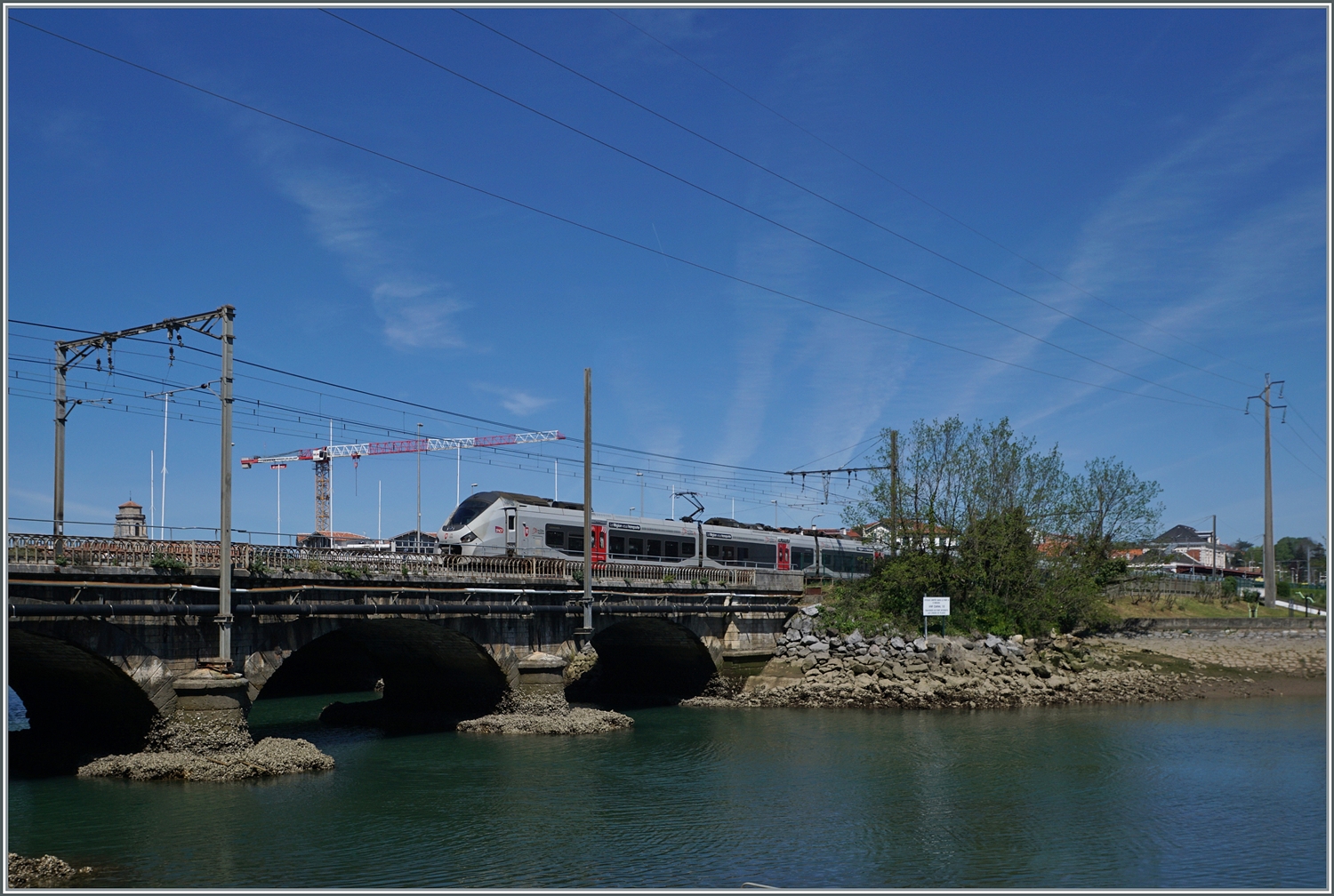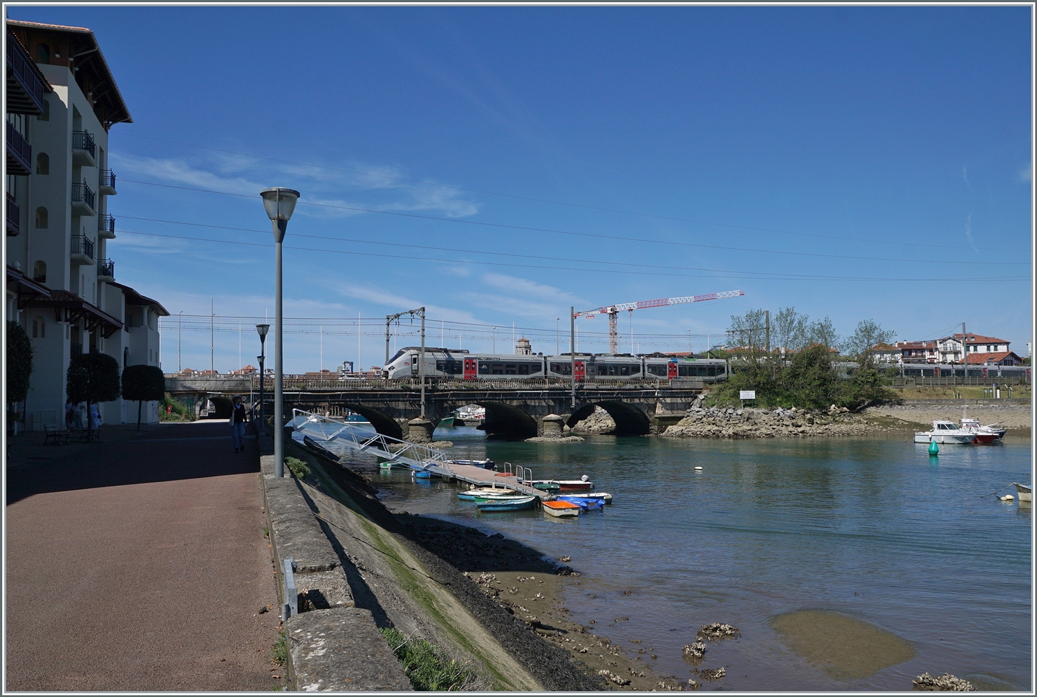 Mit dem neuen Fahrplan ab Mitte Dezember 2025 wird dieses typische Meroux/Belfort-Montbéliard TGV Sujet weniger einfach zu verwirklichen sein, denn die SNCF Züge der 16 Zugspaare pro Tag werden in Meroux kreuzen und nur noch etwa acht Minuten Aufenthalt haben, es braucht also ziemlich viel Glück, dass in diesen acht Minuten gerade ein TGV kommt. Zum Bild: In Meroux steht der als MOBIGO TER 895055 um 10:10 angekommene SNCF Coradia Polyvalent Régiolis 51629M. Der Zug wird um 11:03 als MOBOGO TER 895054 nach Belfort zurückfahren. Im TGV Bahnhof von Belfort Montbéliar TGV ist der SNCF inOiu TGV 9877 von Strasbourg nach Marseille St-Charles angekommen, der Zug wird mit dem Rame 825 geführt.