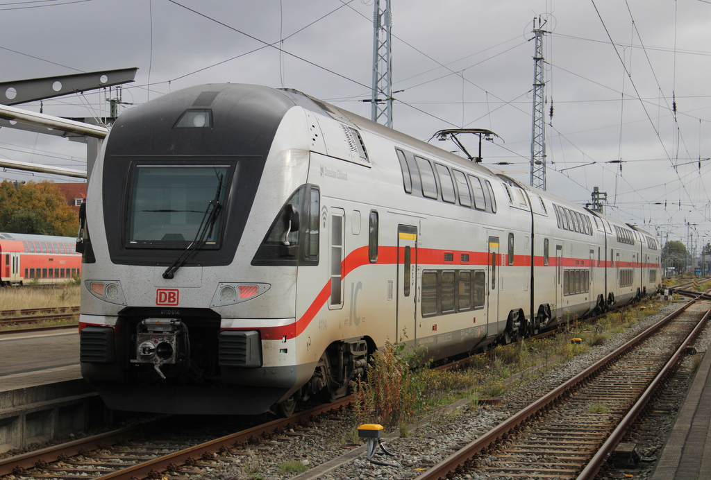 4110 117 als IC 2177(Warnemünde-Dresden)bei der Durchfahrt in Warnemünde-Werft.20.06.2021