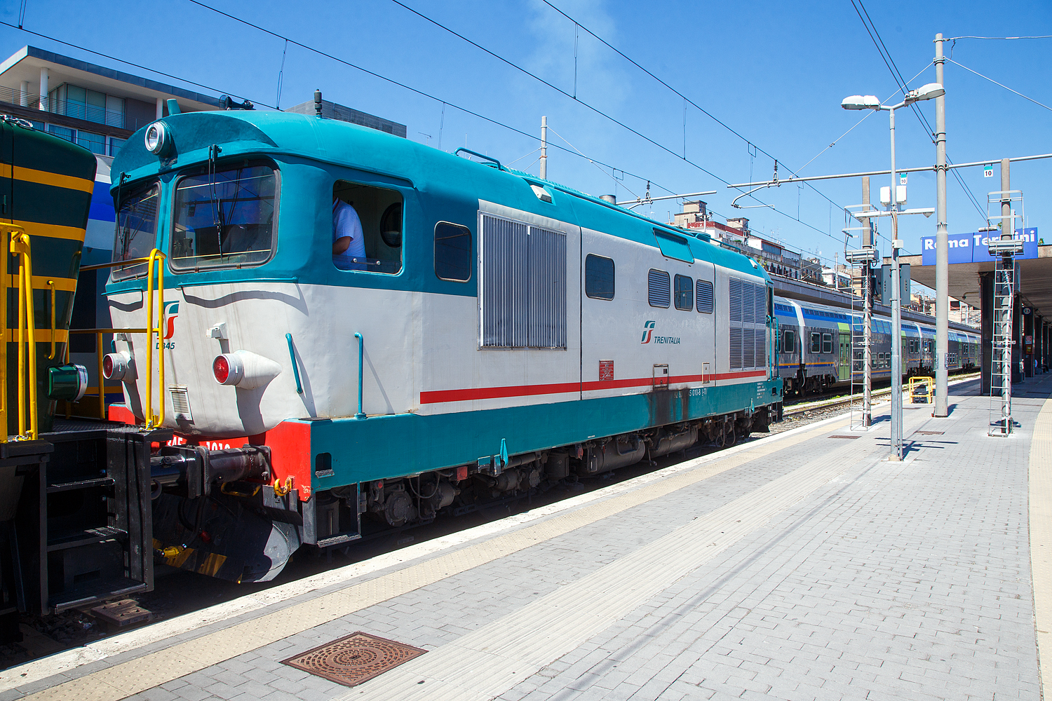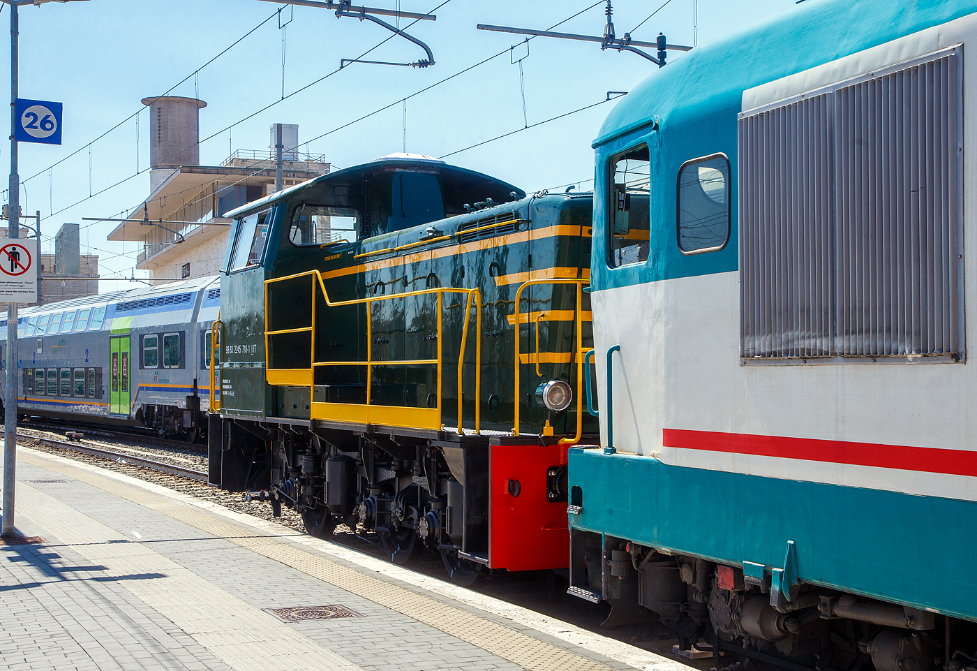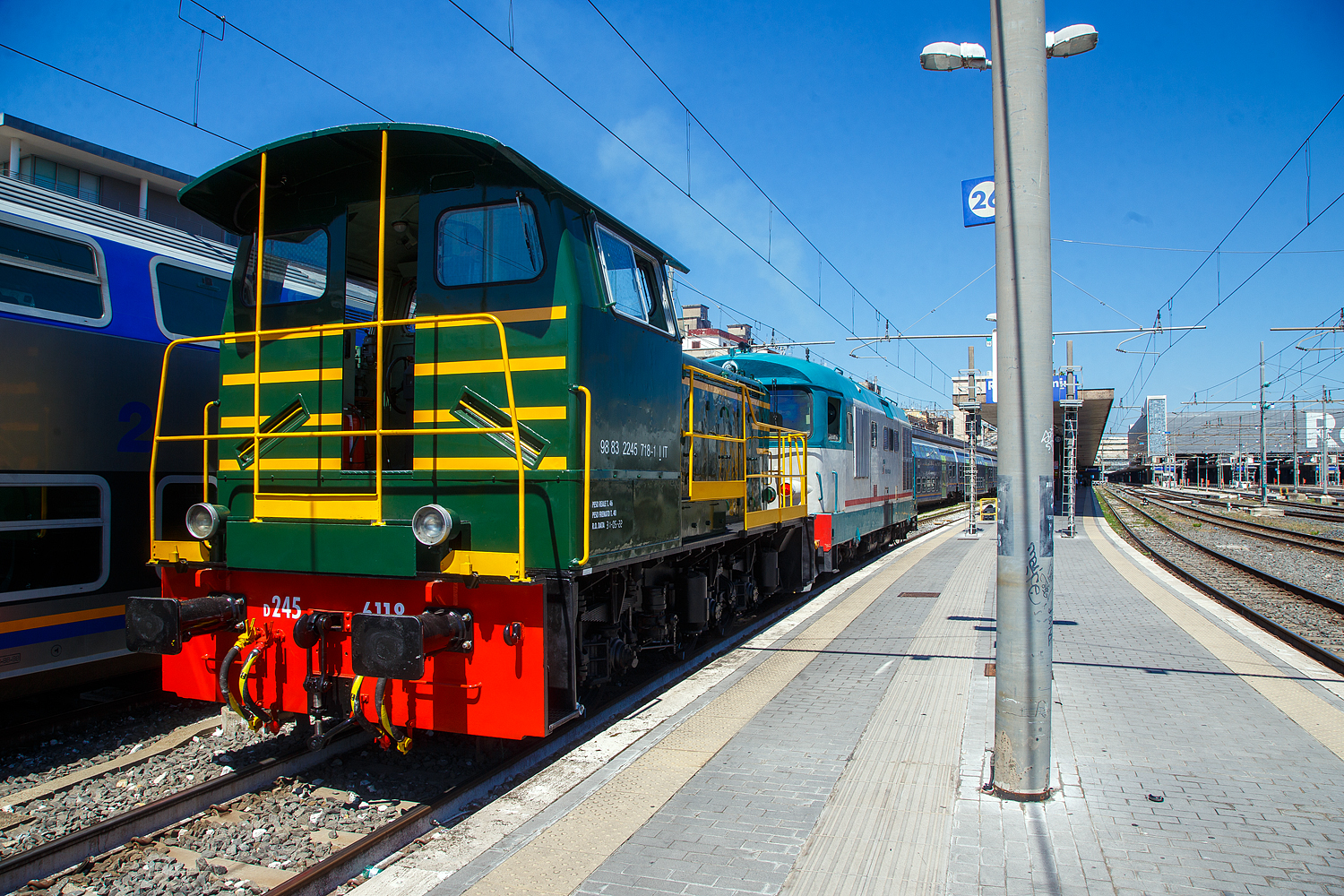 Der Trenitalia “Rock” ETR 521-015, ein fünfteiliger Elektrotriebzug vom Typ Hitachi Caravaggio, verlässt am 21 Juli 2022, als Cinque Terre Express von La Spezia Centrale nach Levanto, den Bahnhof Riomaggiore (Cinque Terre).