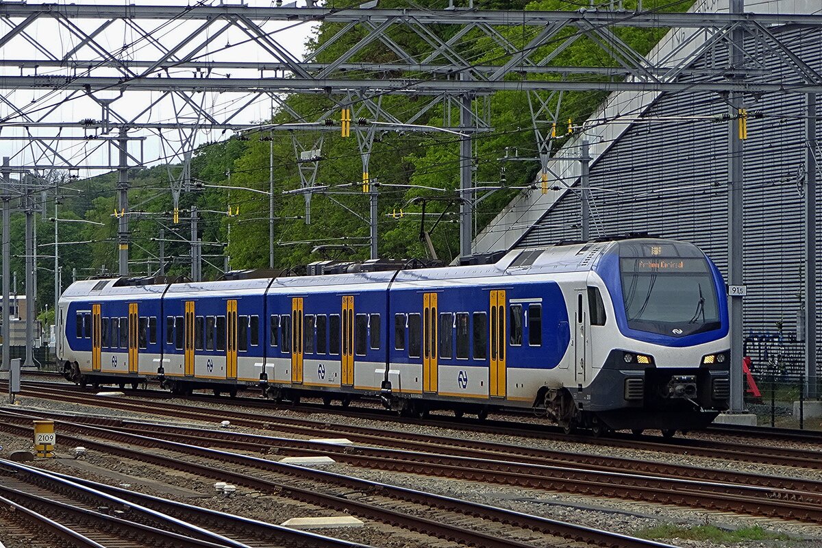 NS 2510 treft am 10.Mai 2019 aus Ede-Wageningen als Sprinter (RB) in Arnhem ein.