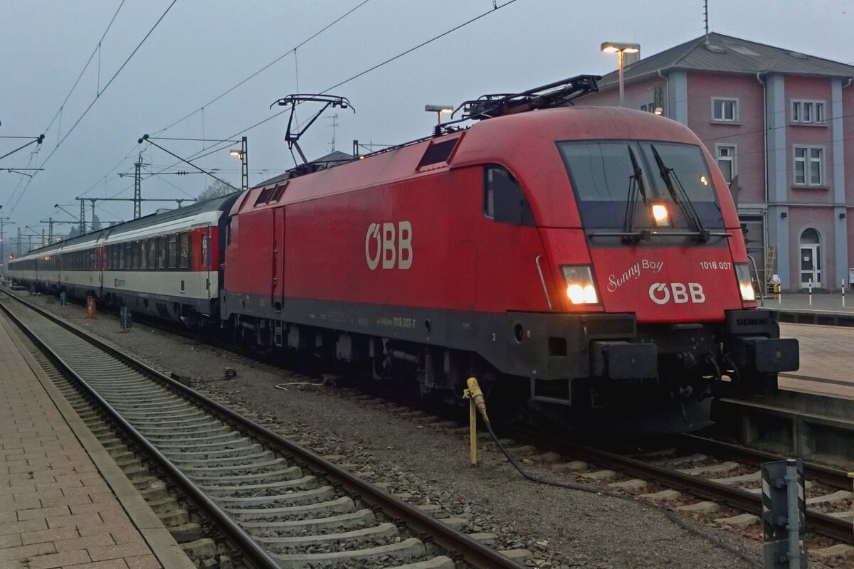Sunny Boy -auch bekannt als 1016 007-treft am 2 Jänner 2020 in Singen (Hohentwiel) ein m it IC 281 nach Zürich HB.