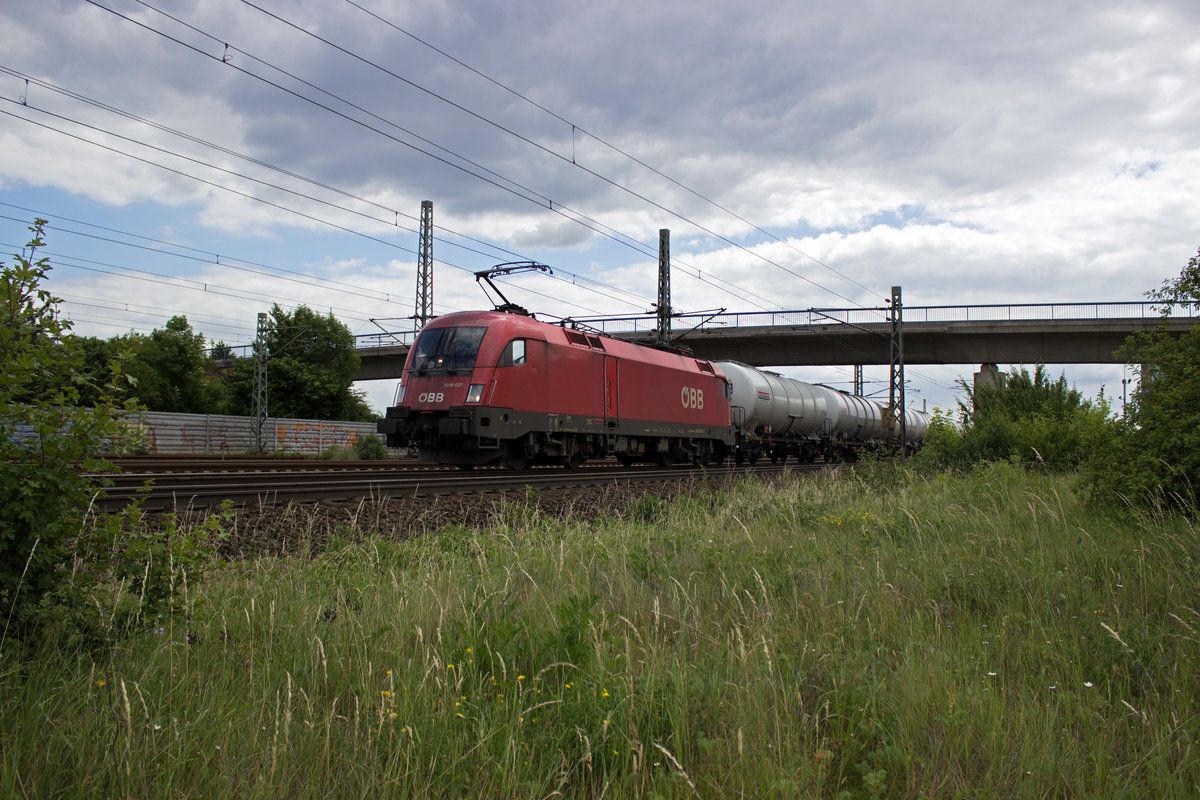 Mit einem Ganzzug aus Kesselwagen war am 26.06.19 die ÖBB-Lok 1016 047 in Richtung Norden unterwegs.