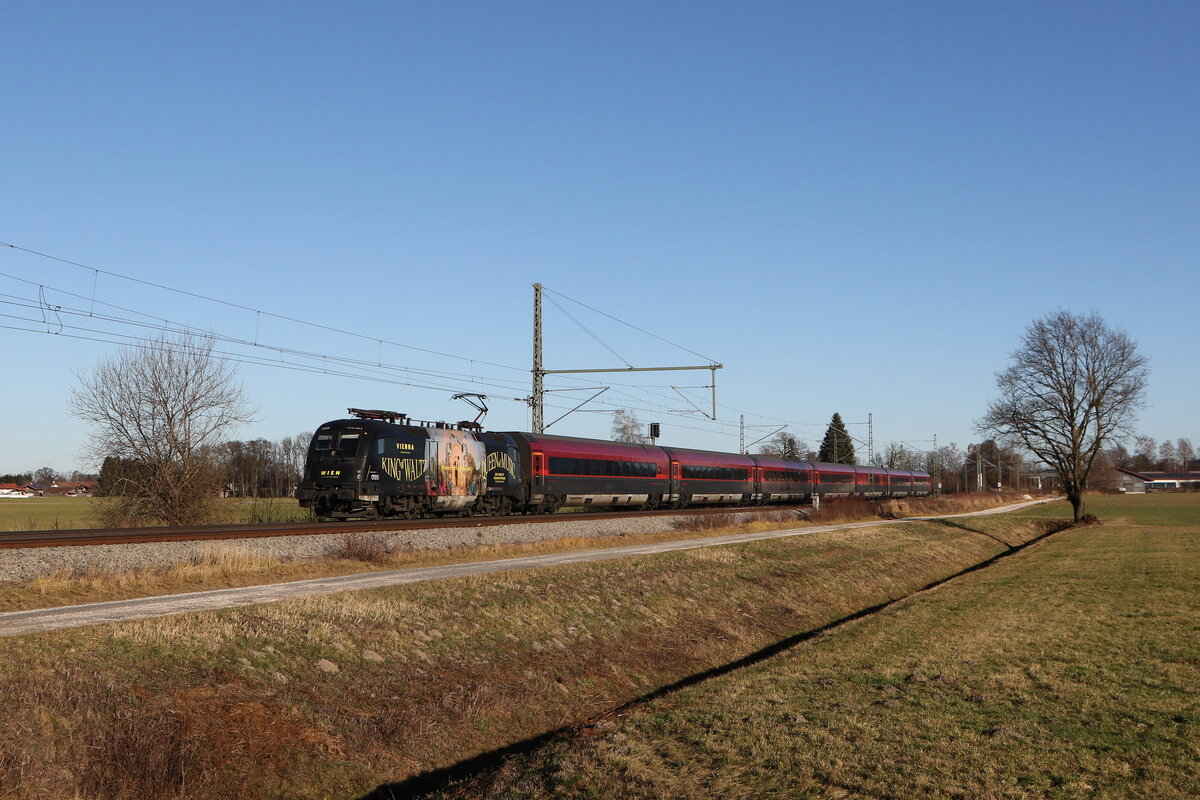 1016 005 und 1116 165 "BIO AUSTRIA" waren am 6. Oktober 2022 bei Übersee in Richtung Freilassing unterwegs.